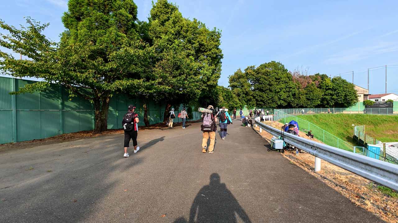 ちなみに、この撮影窓の上のあたりにもU字溝が逆さに並べて座れる感じになっていました。なので、普通にここから撮影しているカメラマンも多かったように思います。中には、このU字溝の上に立って撮影していた人もいましたが、そこまでしなくてもフェンスの上から狙えたような気がするんだけどな…。