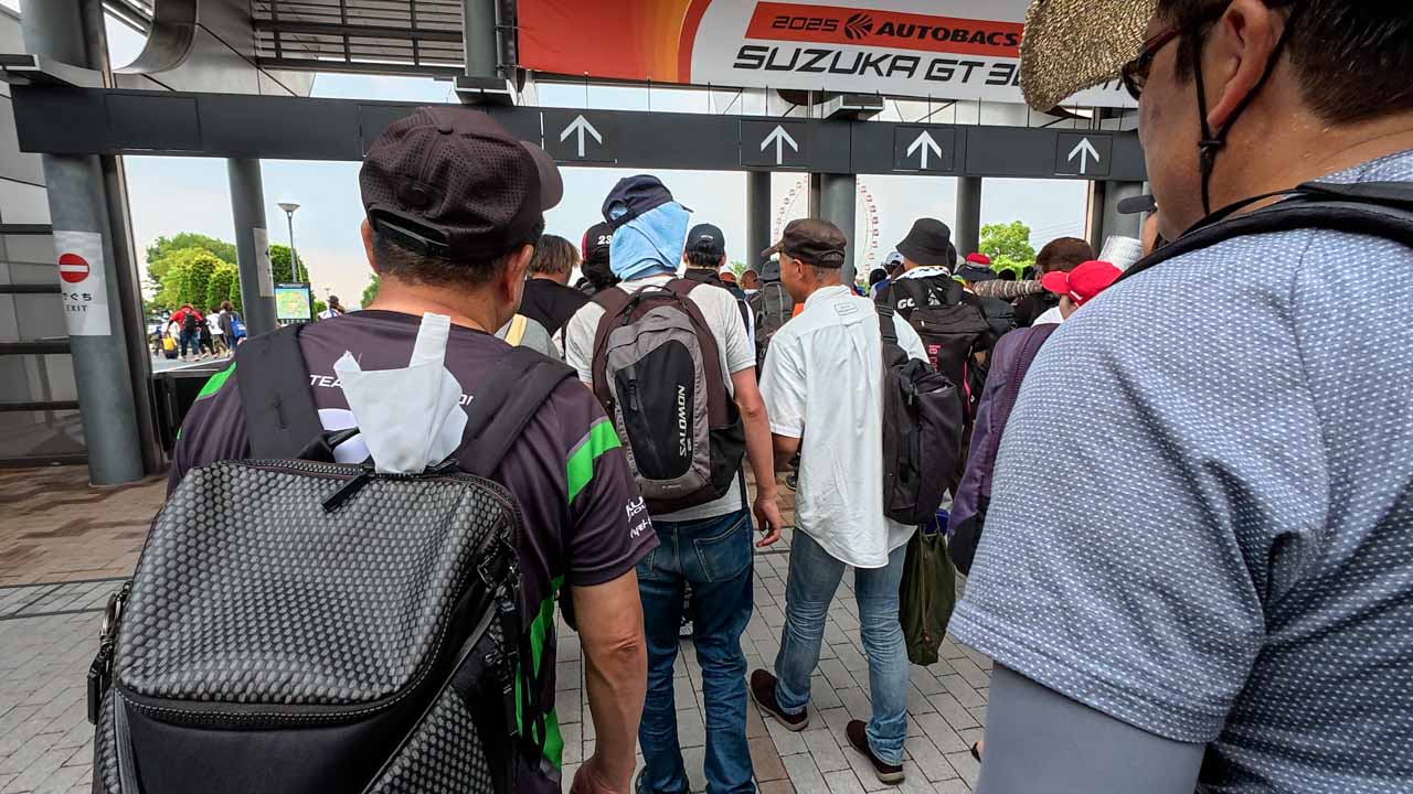 ここでパドックパス側の隊列とも合流するのですが、どうにもここから前に動かない。あれ!?どうしたんだ?トラブルか!?とか思ったのですが、よくよく考えればVIPスイートの方達の優先入場があるのが鈴鹿なんだよな…。最近は、そんな課金をする余裕も無いので、そんなことは完全に忘れてました💦。