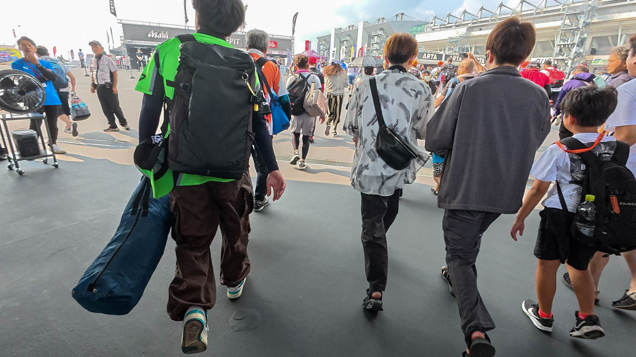 ただ、ここでくせ者なのが実はこの逆バンクトンネルで、このトンネルの中は電波が通じないので圏外になってしまい、トンネルの中だとチケットチェックが出来ないというトラブルが起きてました。ただ、この辺りは、サーキット側も把握をしていて、その段階でチケットチェックを中断して、隊列が進んで外に出てきて電波が通じるようになってからチェックを再開する対応をしていました。