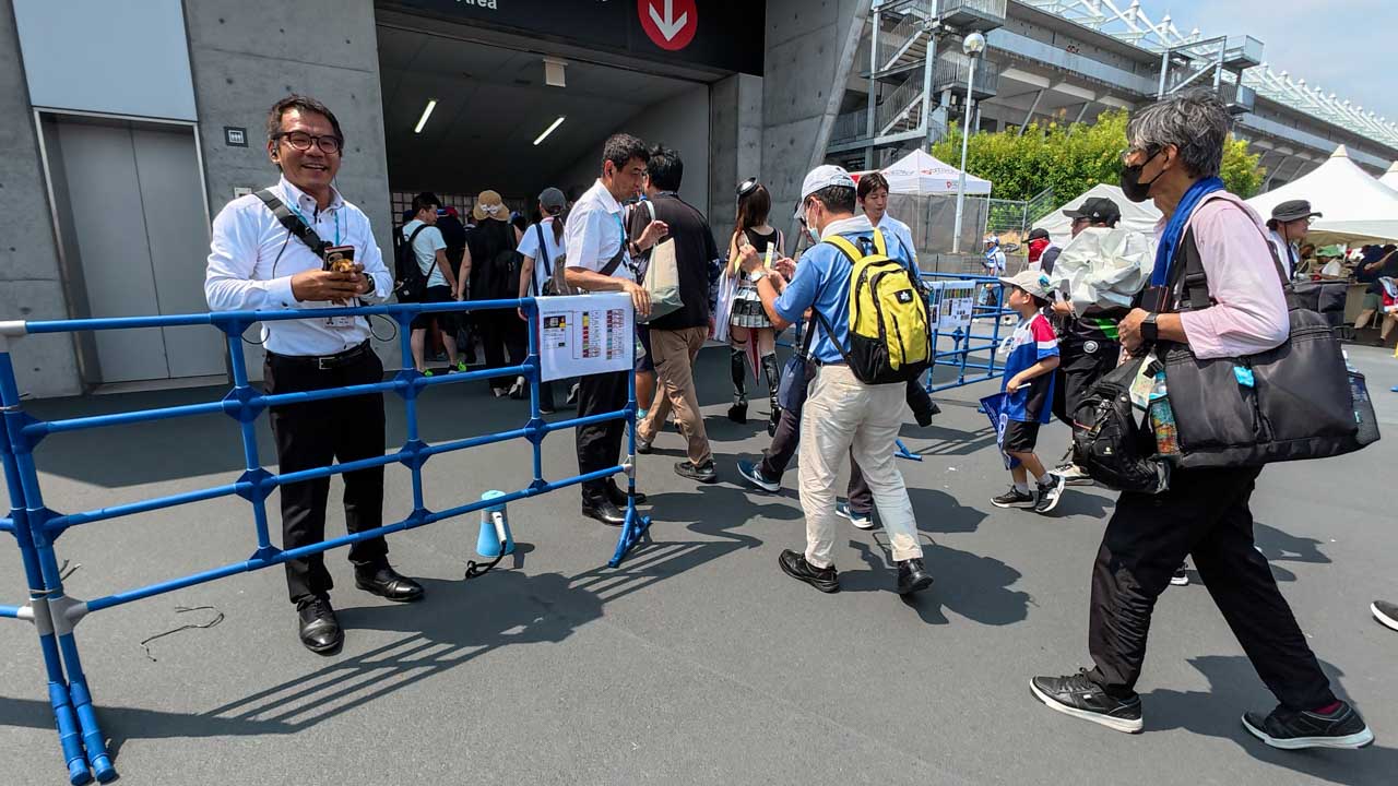 その後、12時頃にチケットチェックをしつつ圧縮をかけますが、ちょうど私のあたりがギリギリ日陰エリアに。これは本当に助かりました。これが、先程の4~5分程のロス無しで到着していたら、たぶん炎天下の元、待つことになっていたと思います。