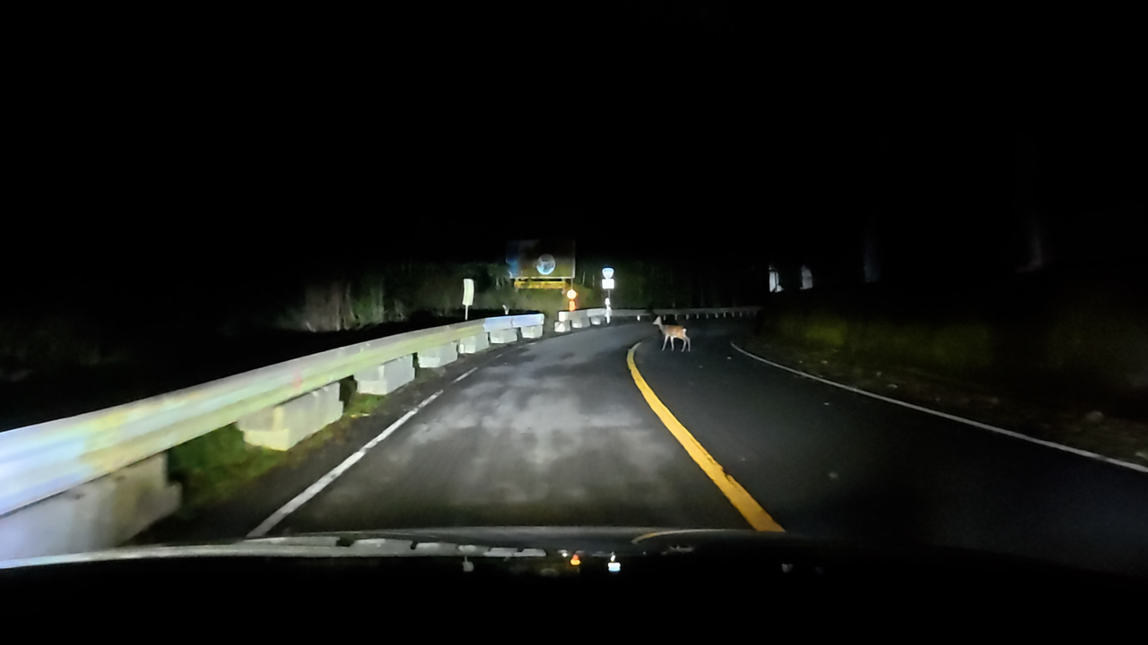 そうです、鹿さんの出没です。これまでも、佐用から岡山国際を目指すときに、国道179号線の県境の峠部分で度々鹿さんが登場してきたし、何なら一度衝突をしたこともありますが、今回は深夜ということもあり、嫌な予感は的中しました。それにしても出てくるわ出てくるわで、ザッと10頭以上はいたのではないでしょうか。