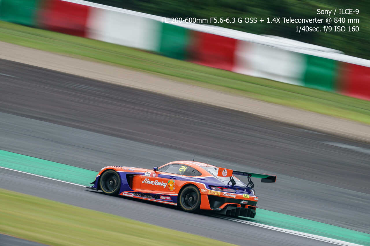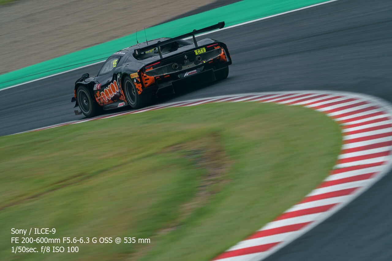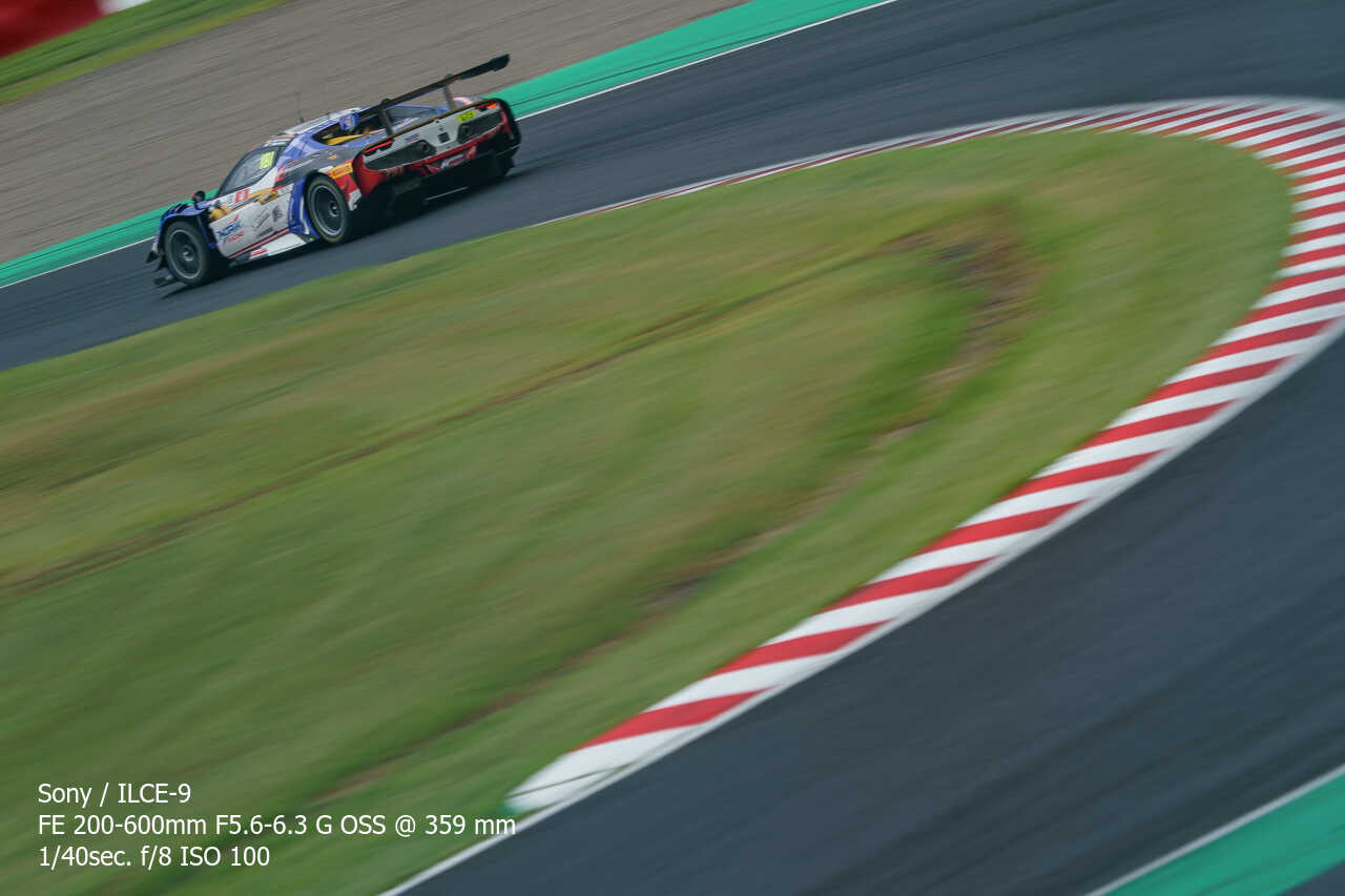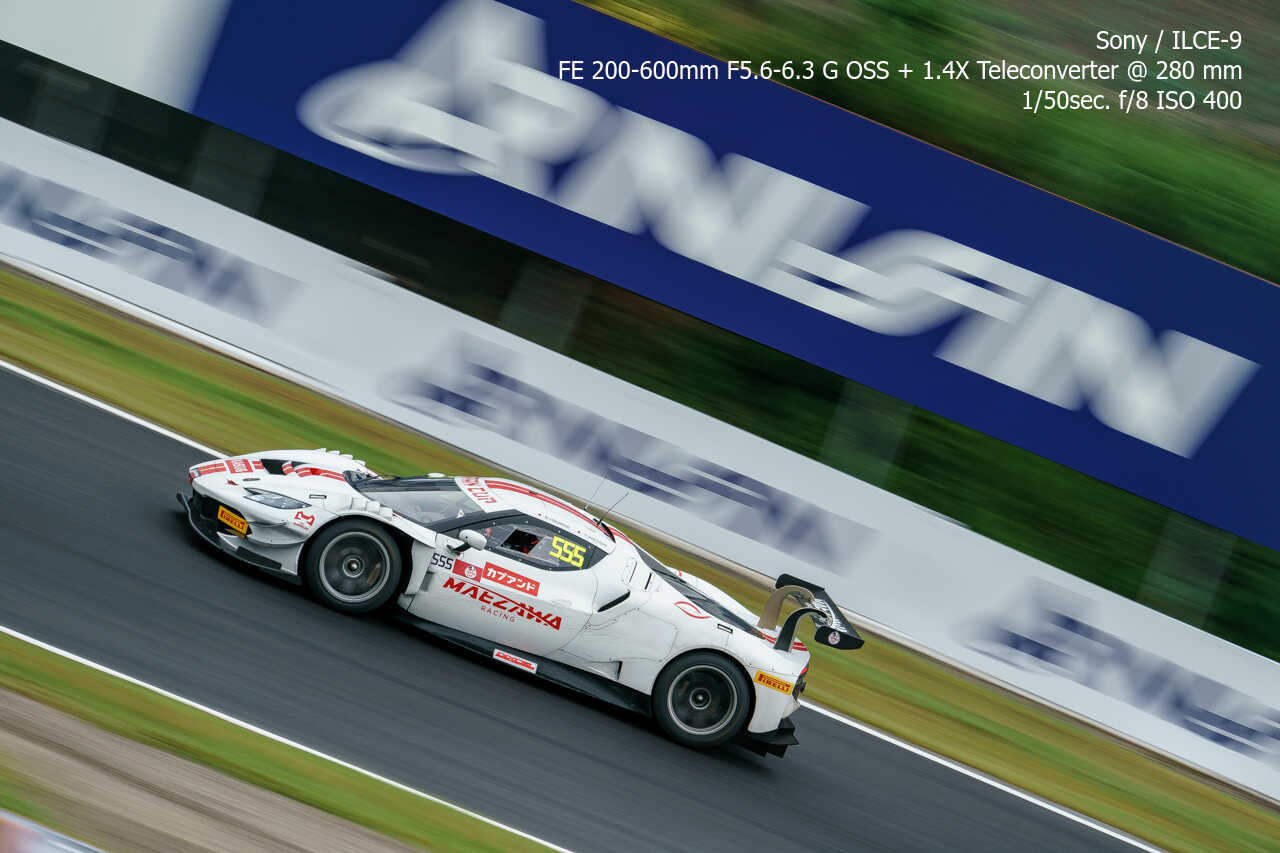 あえてこの位置からも200Rの立ち上がりを狙ってみましたが、この角度って背景がスッキリしていて結構いい感じ。この1/80sぐらいならもうちょっと超望遠狙えるかもしれないけど、それを狙うためにSEL400800Gに手を出すってのもな…。