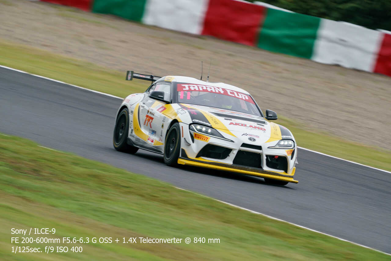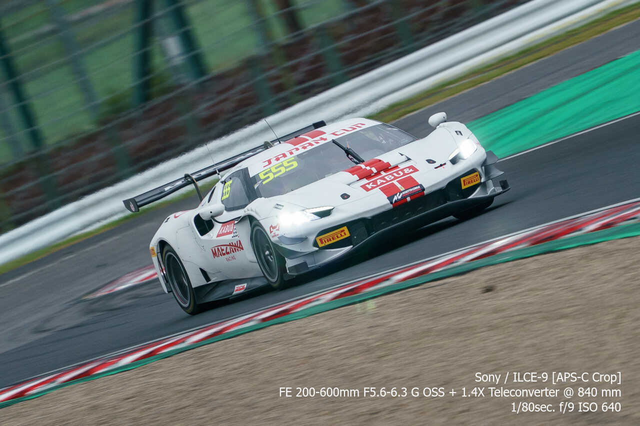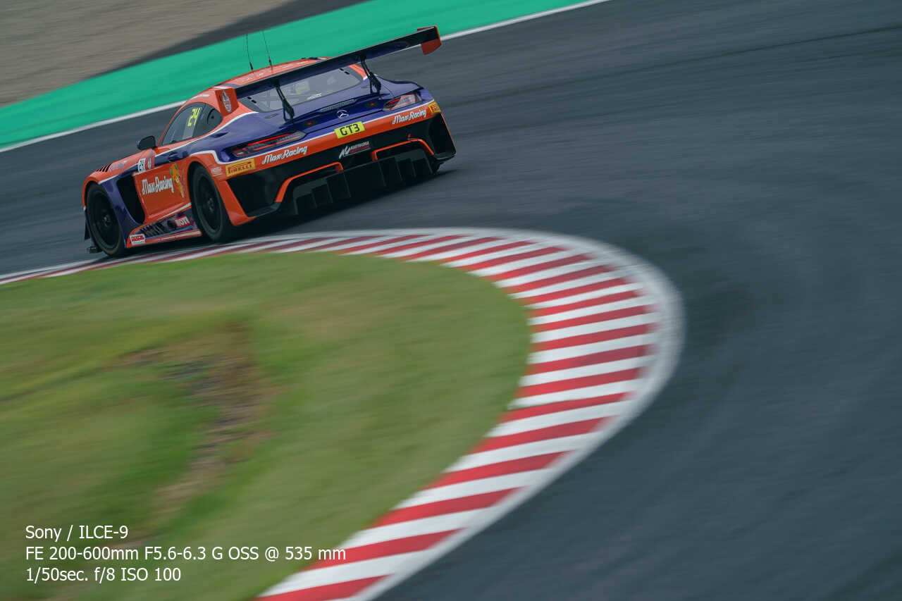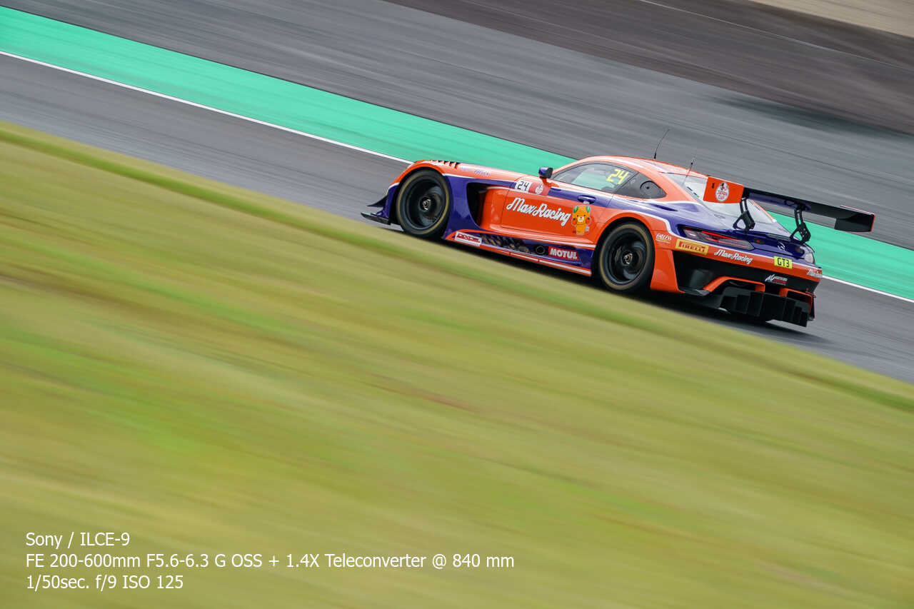 あえてこの位置からも200Rの立ち上がりを狙ってみましたが、この角度って背景がスッキリしていて結構いい感じ。この1/80sぐらいならもうちょっと超望遠狙えるかもしれないけど、それを狙うためにSEL400800Gに手を出すってのもな…。