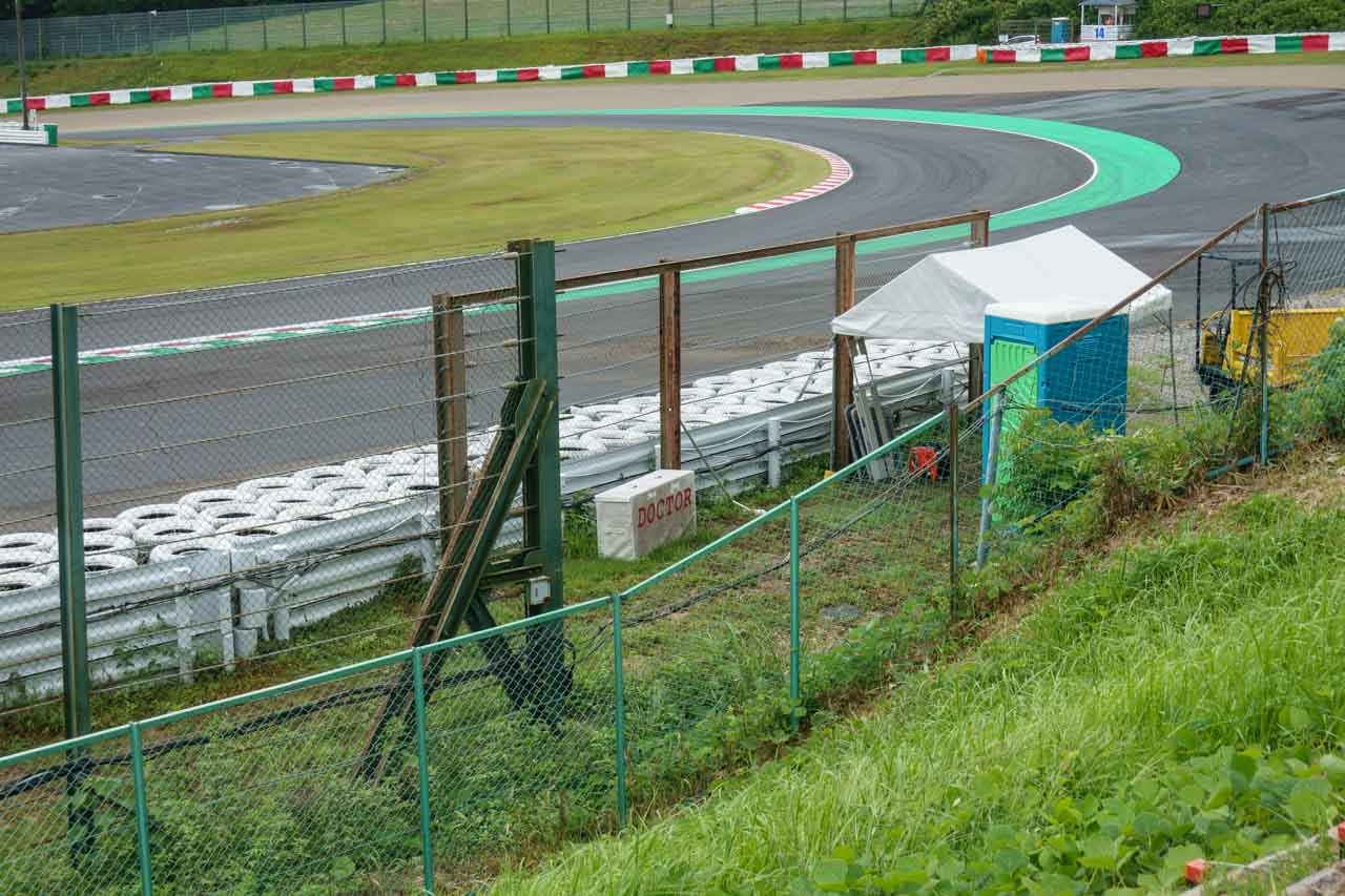 そう、2輪専用シケインのところにある撮影窓。まあ、ここで狙うなんて2輪レースの時じゃないのか?と思ったりもしたのですが、ちょっと眺めてたら、何となく狙えなく無い気もしてきたんですよね。
