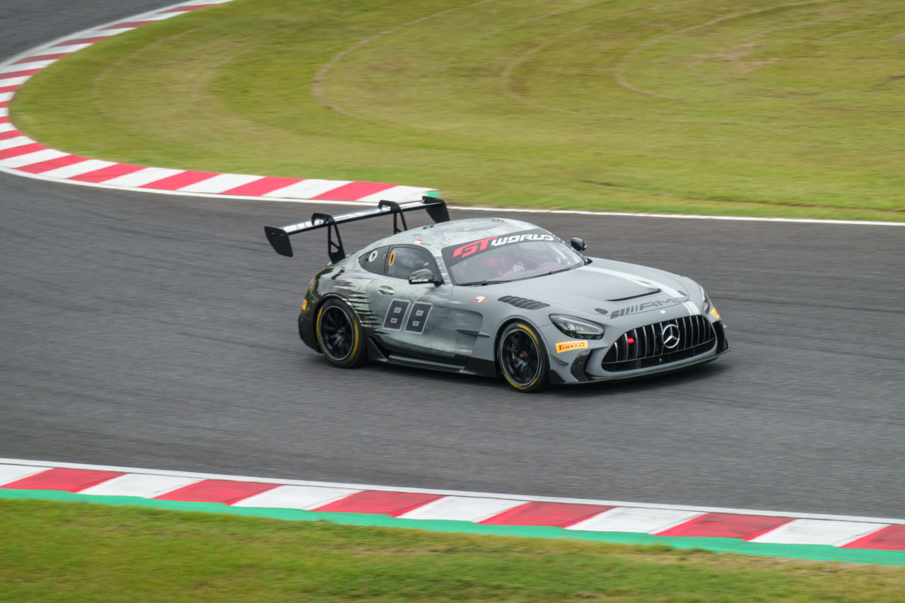 実は、このタイミングでMercedes-AMGのGT2が走っていて、この週末、ちょこちょこ同乗体験走行とかもしていたみたいです。ただ、外見上はほとんどGT3と見分けがつかないんですけどね…。