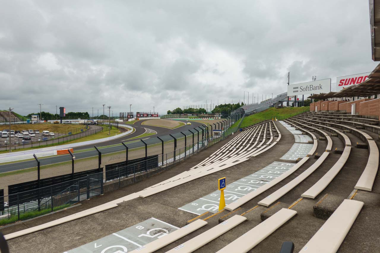 それならばと、すぐ目の前のR席スタンドでシケインからの立ち上がりを狙うことに。