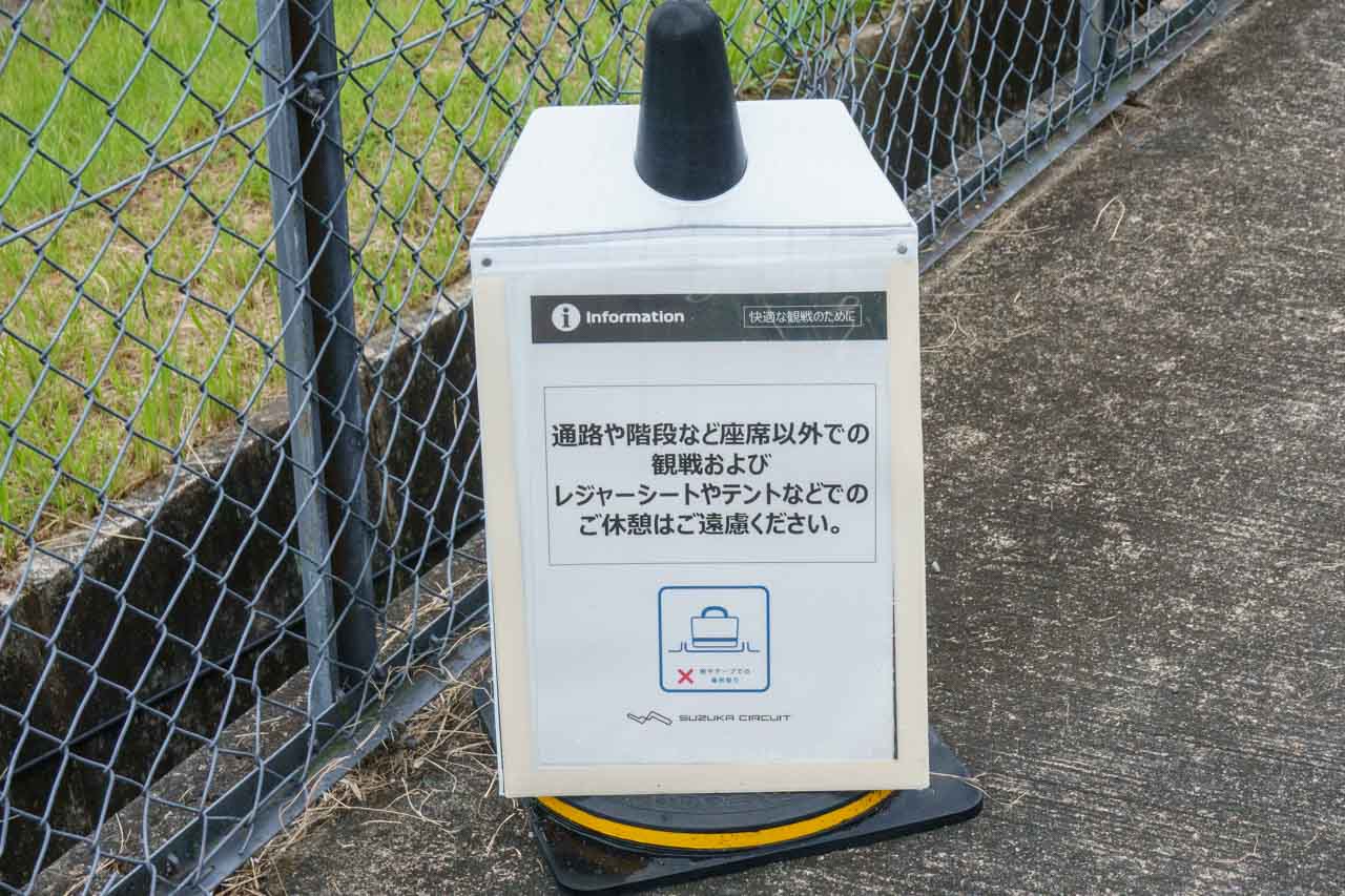 今回、こんな看板が置いてあったんです。読む限りは、R席最前列がやや広いスペースがあるので、ここでレジャーシートを敷いたり、椅子を使ったりして観戦するなよ!という話なのでしょうが、コレって読み替え方を変えるとここでフェンス越しで狙っていいのか?って私は捉えてしまったんですよね。しかも今まではこんな表示無かったし。