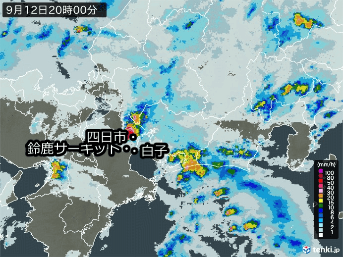ただ、雨雲レーダーを睨めっこしていると、やけにこの鈴鹿近辺だけ局所的に雨雲が発生。はじめは、なんでこんな降り方になるんだ?と思っていたのですが…