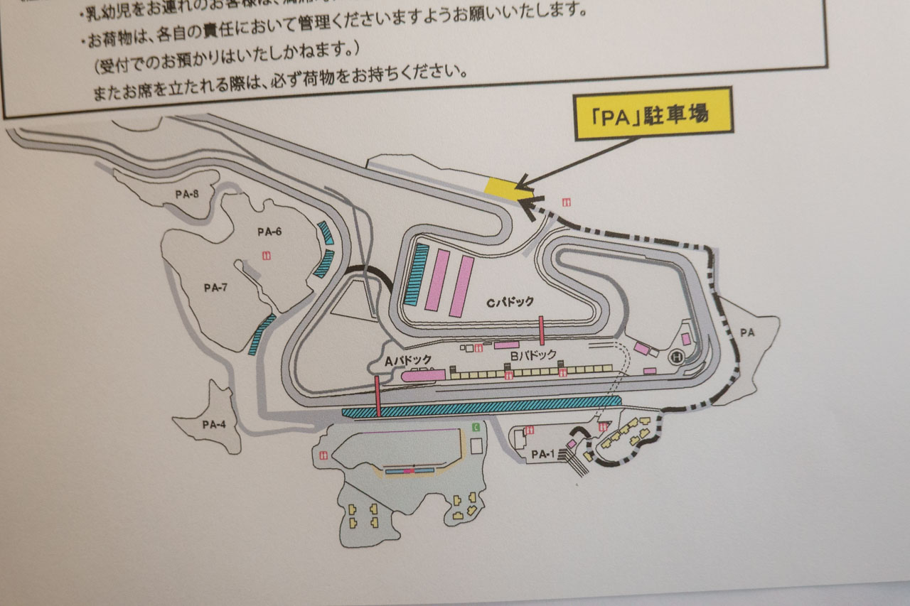 ザッと降ってしまうのか心配していましたが、霧雨程度でギリギリポンチョ無しでもしのげる程度でした。PA駐車場までパドック内を抜けて10分程で戻り、帰路につきました。