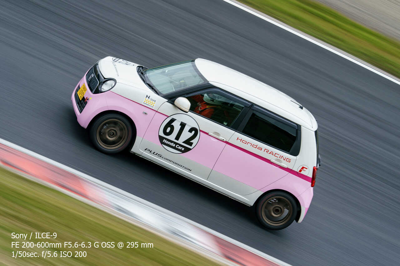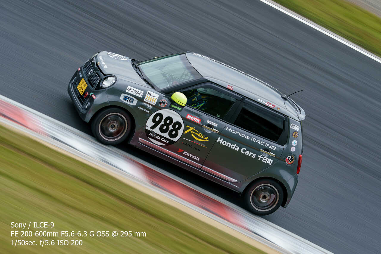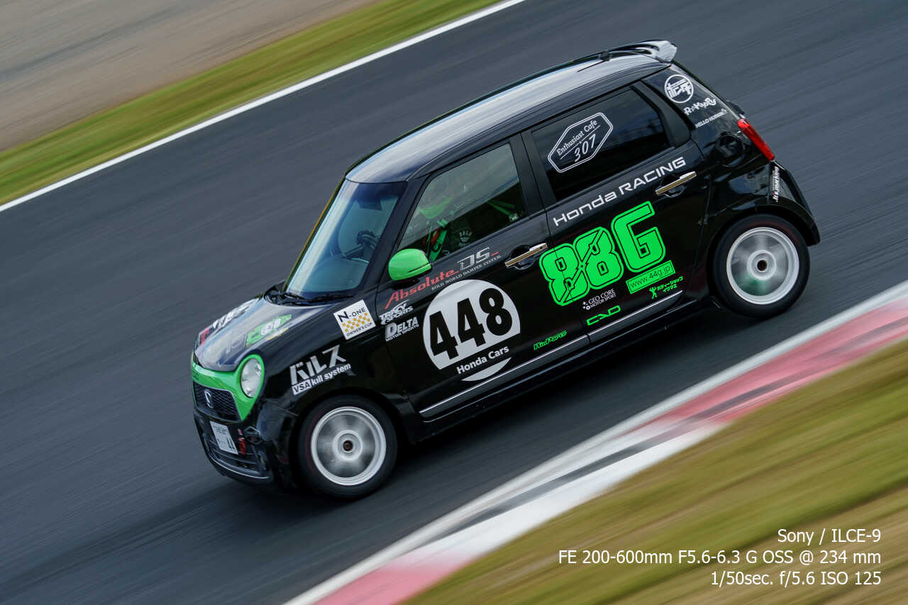 機材を変える余裕も無かったので、35-150mmのテレ端×APS-Cクロップなのでコレが限界。なかなか爆音のマシンがコースインしていく様子は迫力があります。