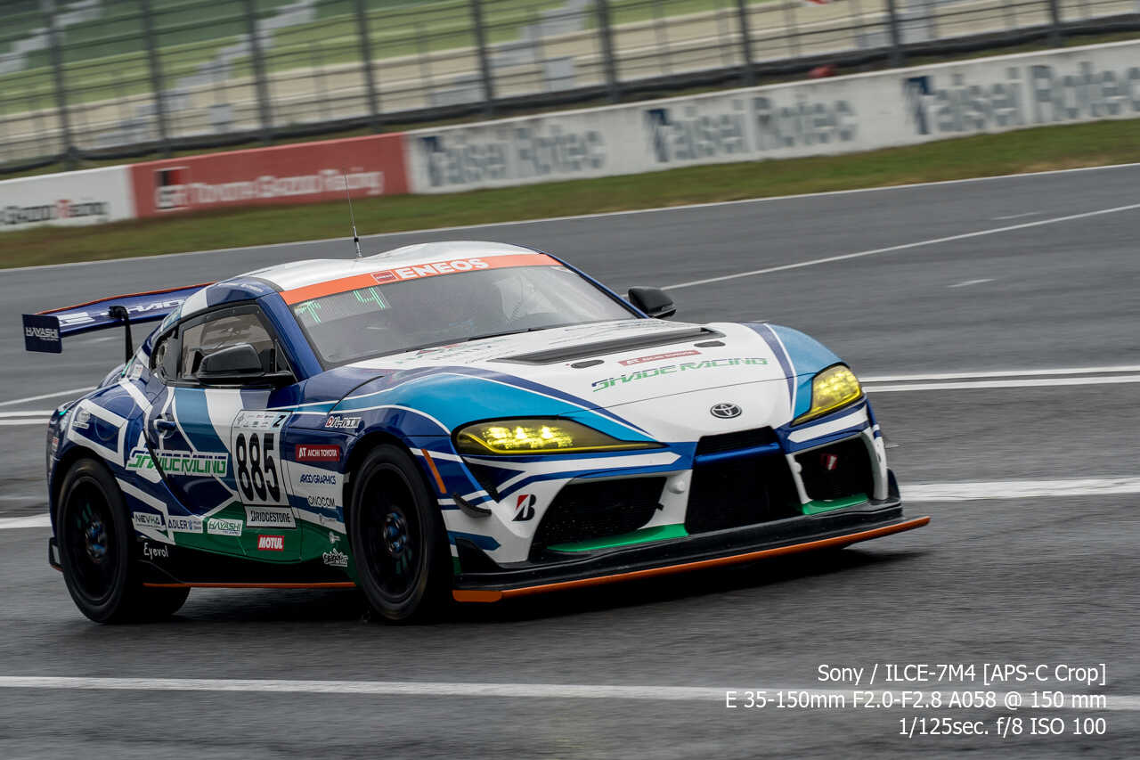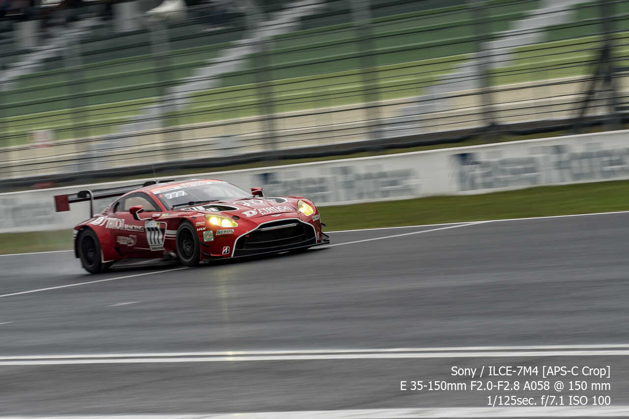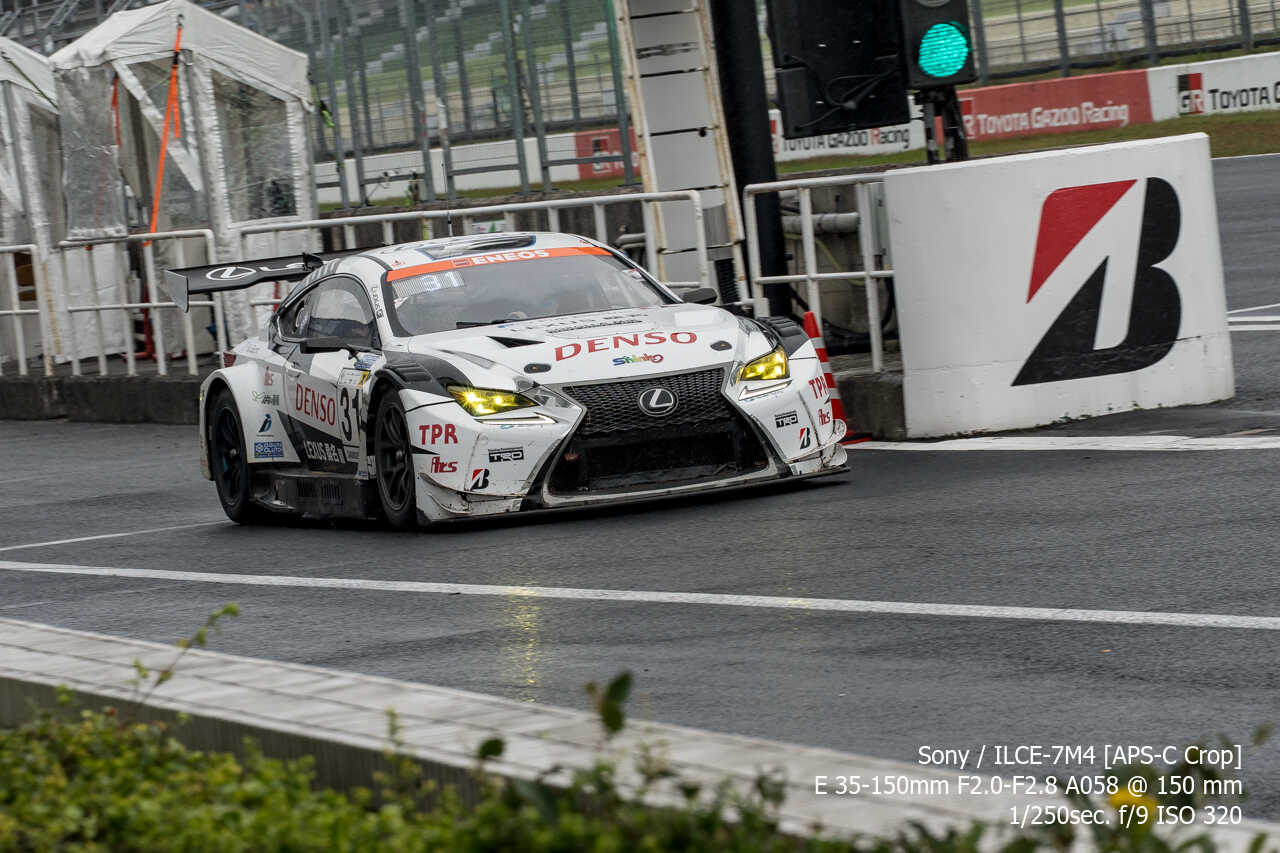 機材を変える余裕も無かったので、35-150mmのテレ端×APS-Cクロップなのでコレが限界。なかなか爆音のマシンがコースインしていく様子は迫力があります。
