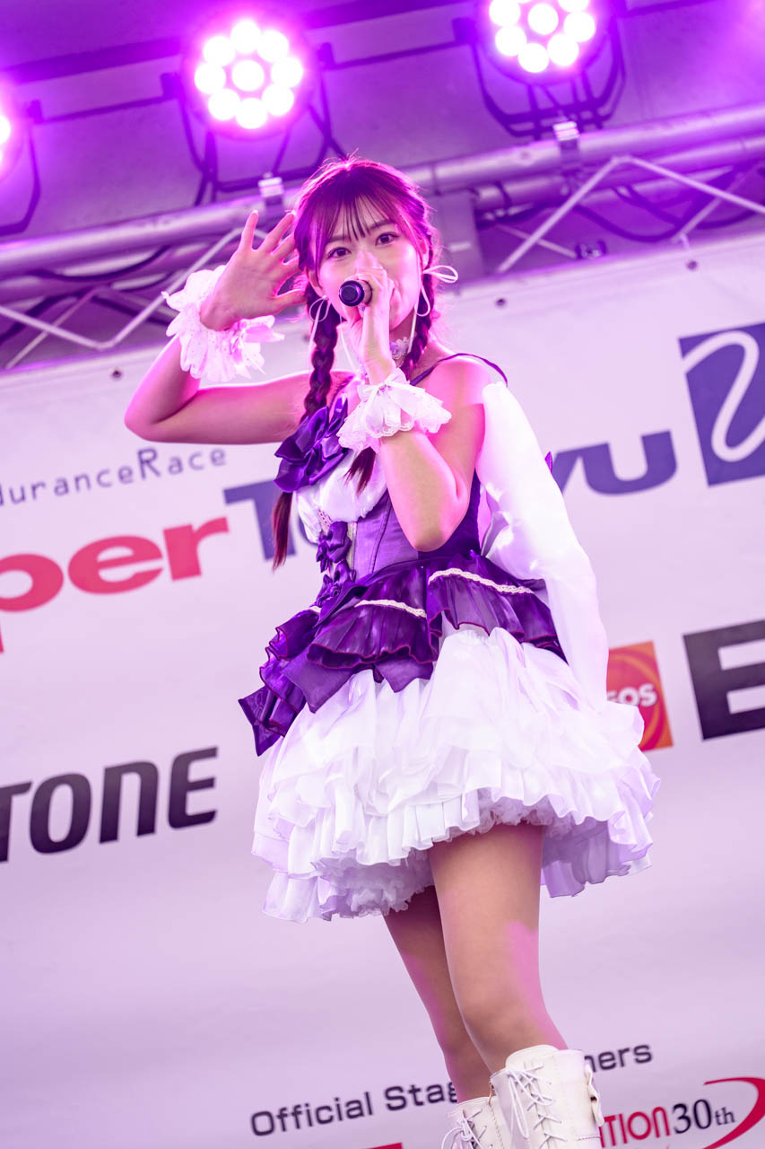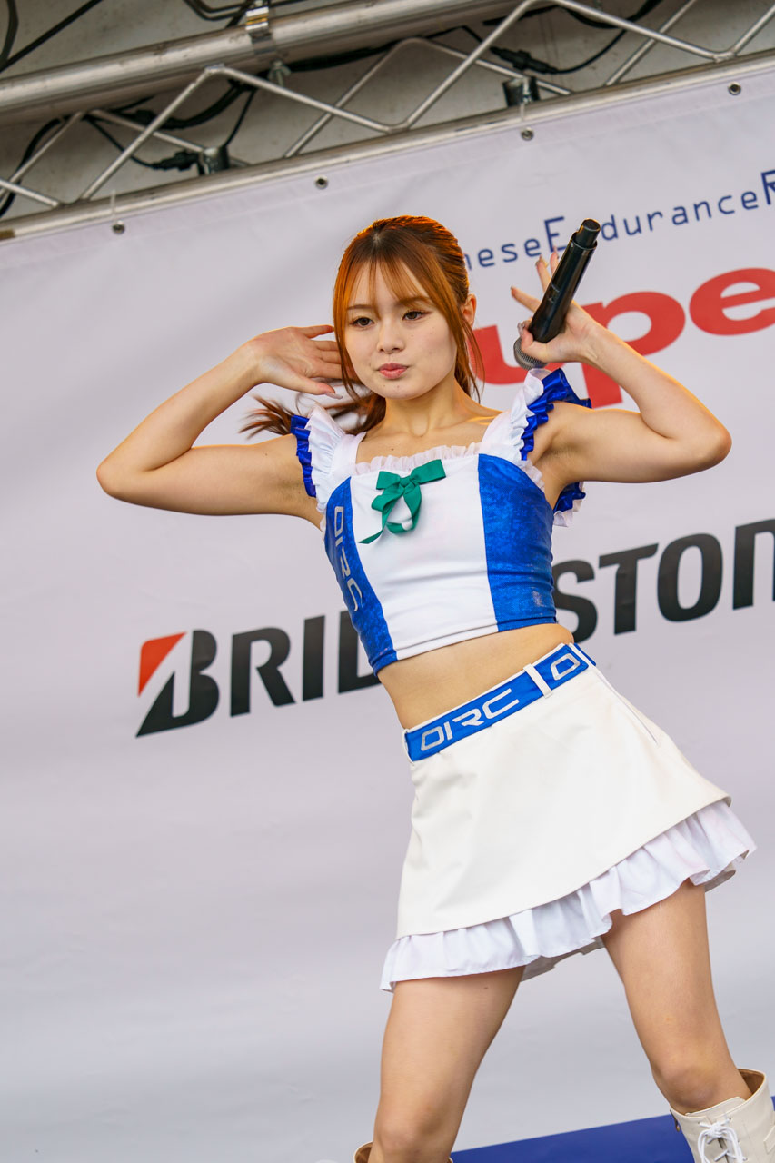 何気に初っ端が、ステージ前の村上さんというのが何とも胸熱。たぶん彼女をこういったタイミングに撮影したのって、デビューの2019年のS耐鈴鹿戦(GTNET)以来。前田さんも昨年のEXEDYブースでの撮影があるけど、あれを除けば初めてかも。そして、涼野さんですよ。彼女って、長年TWSプリンセスのイメージが強いんだけど、初めてお会いしたのって実はS耐だから、そのS耐で再び彼女をこうやって撮影出来るのは感慨深い。