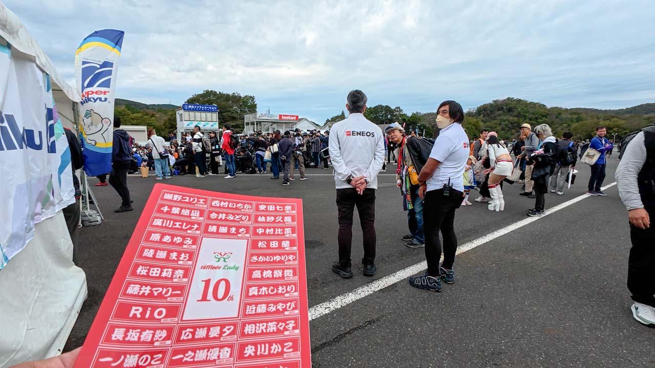 8:35にN-ONEの予選走行が終わり、急いで荷物を片付けてイベント広場へ。例年なら、土曜午前中はS耐のフリー走行を撮影するのですが、何となく今年の土曜はレースアンバサダーメインで撮影しようかなという思いがあったんですよね。