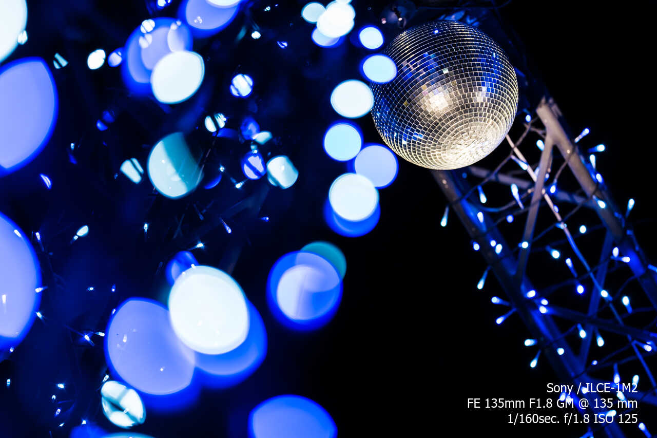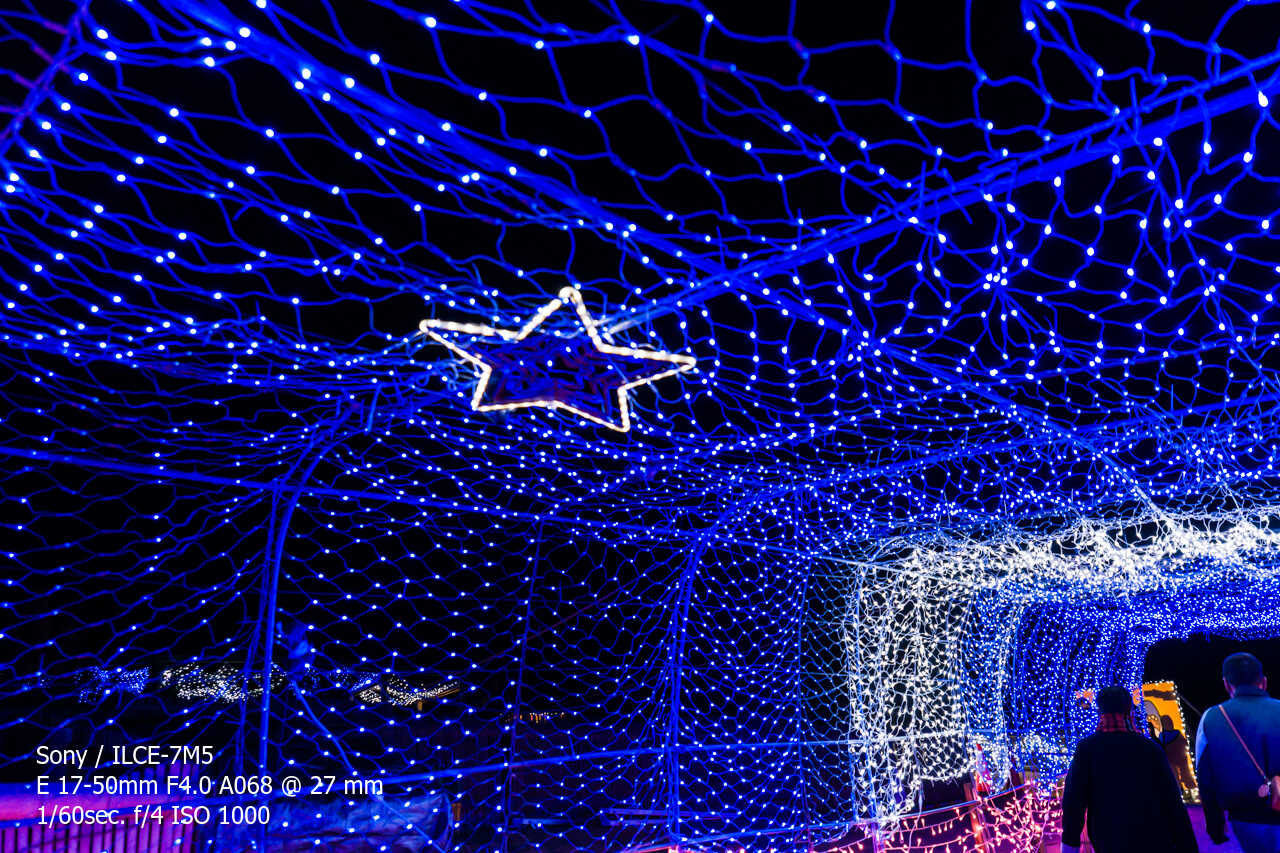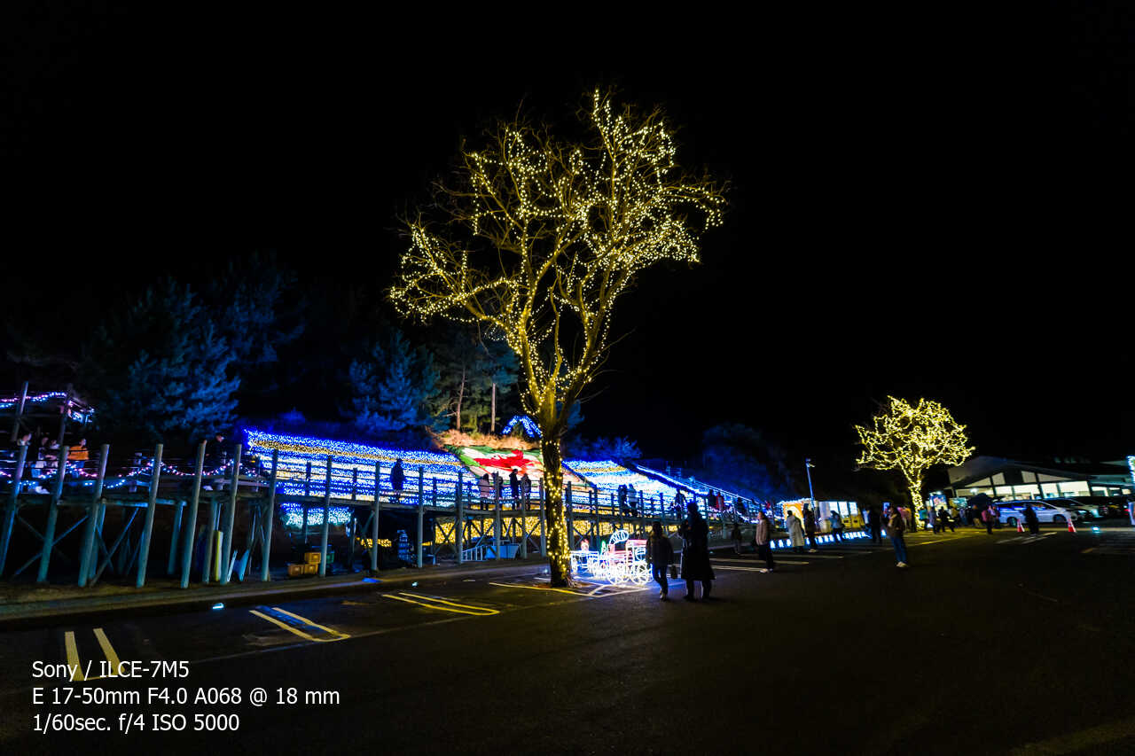 一様、木に巻き付いた照明を前ボケにして狙ったけど、もうこれで限界。