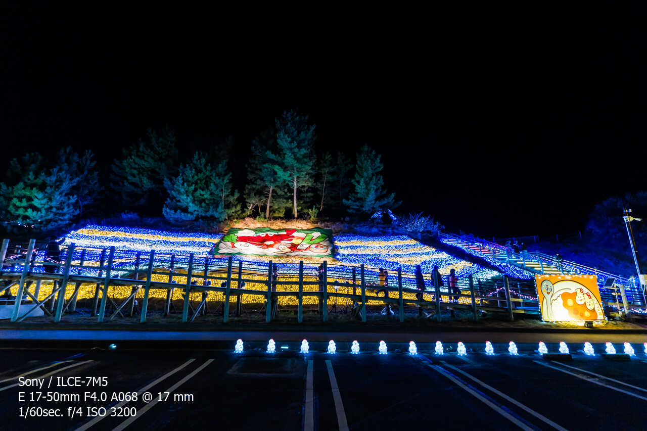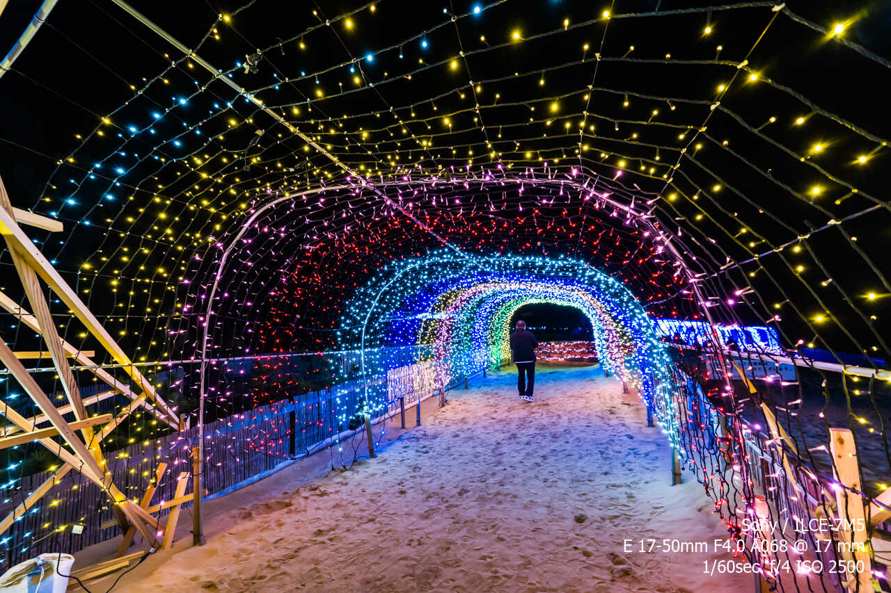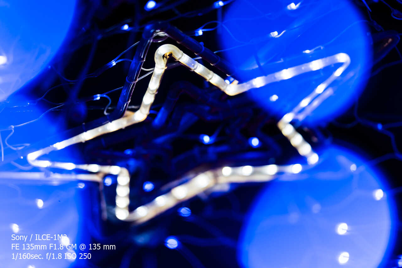 一様、木に巻き付いた照明を前ボケにして狙ったけど、もうこれで限界。