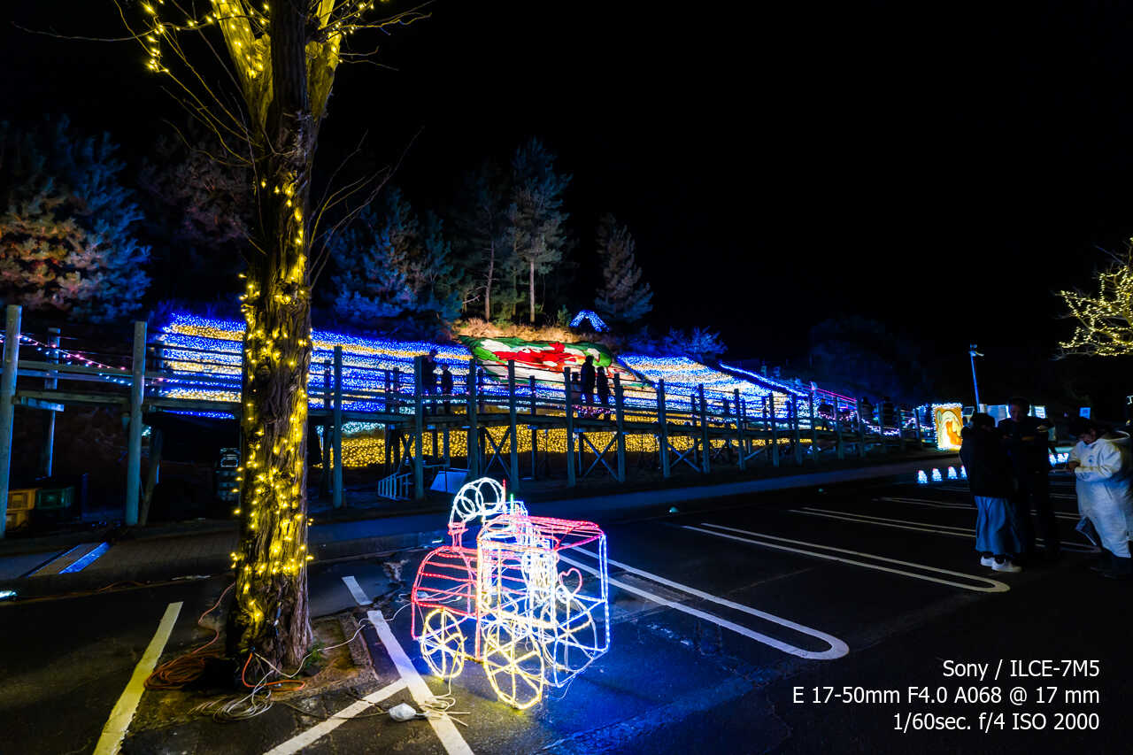 これなら何とか前ボケ入れて狙えるかなと思ったけど、まあコレがギリギリってところかな。っていうか、もう被写体に成り得そうなのがもうコレしか無いというのが寂しい。まあ、もうここのイルミネーションは、カメラマンを対象としたようなものじゃないよな…。