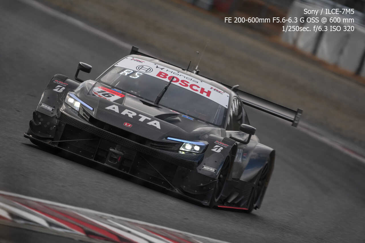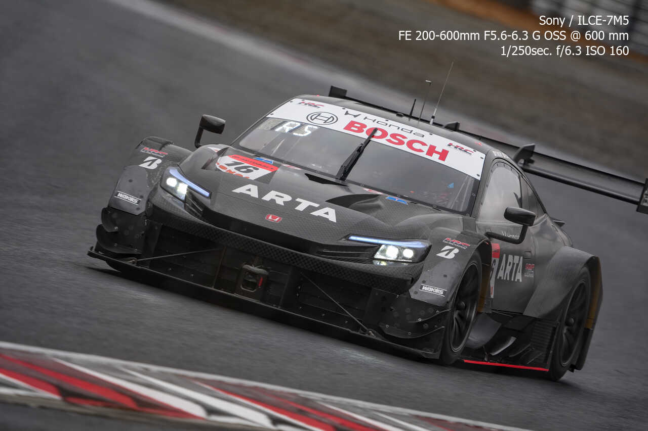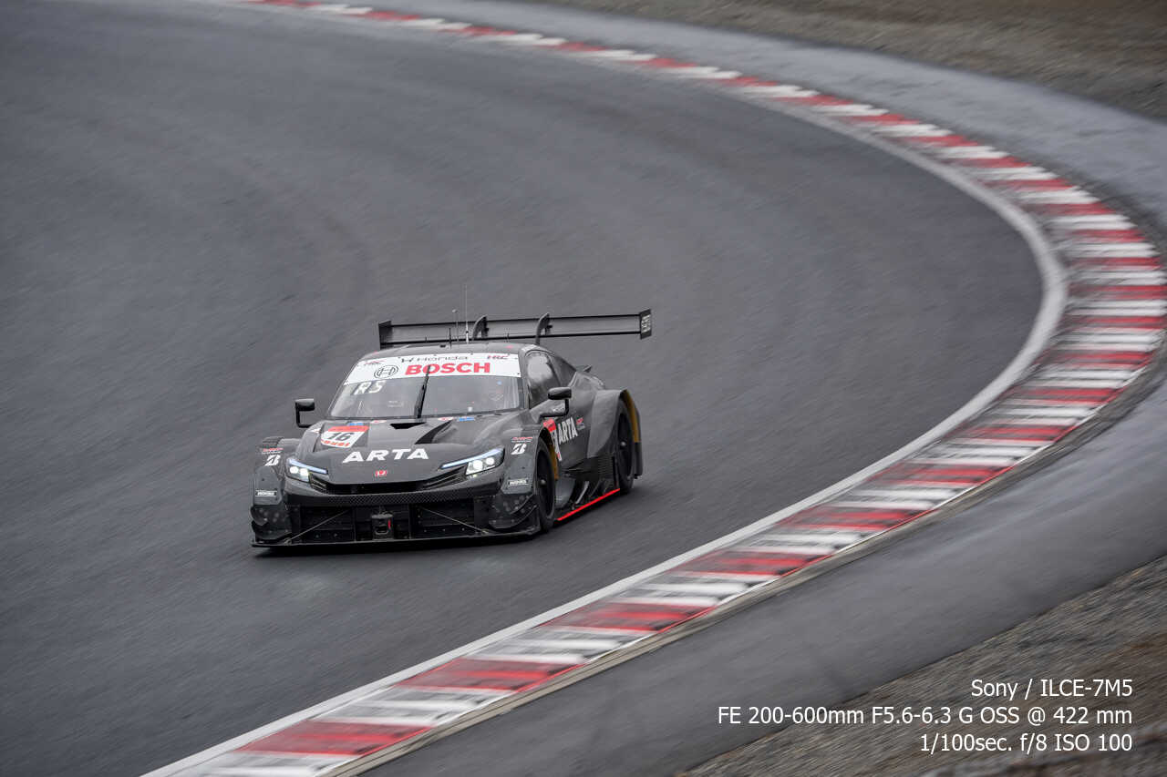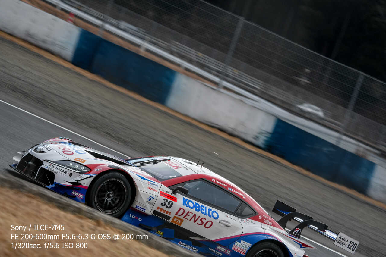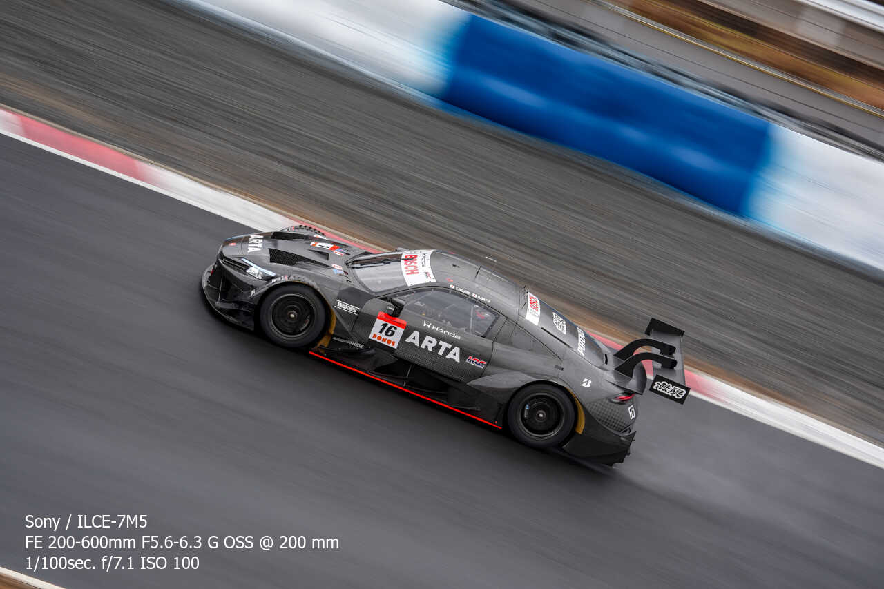 ここの構図はやっぱり左上げ構図なんだよな。ただ200mmという構図がGT500だとギリギリなのはあるんだけどな…。あとは、さすがに速度が速いので、ウォールは若干歪んでいるように見える。