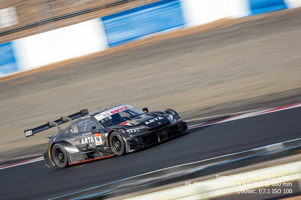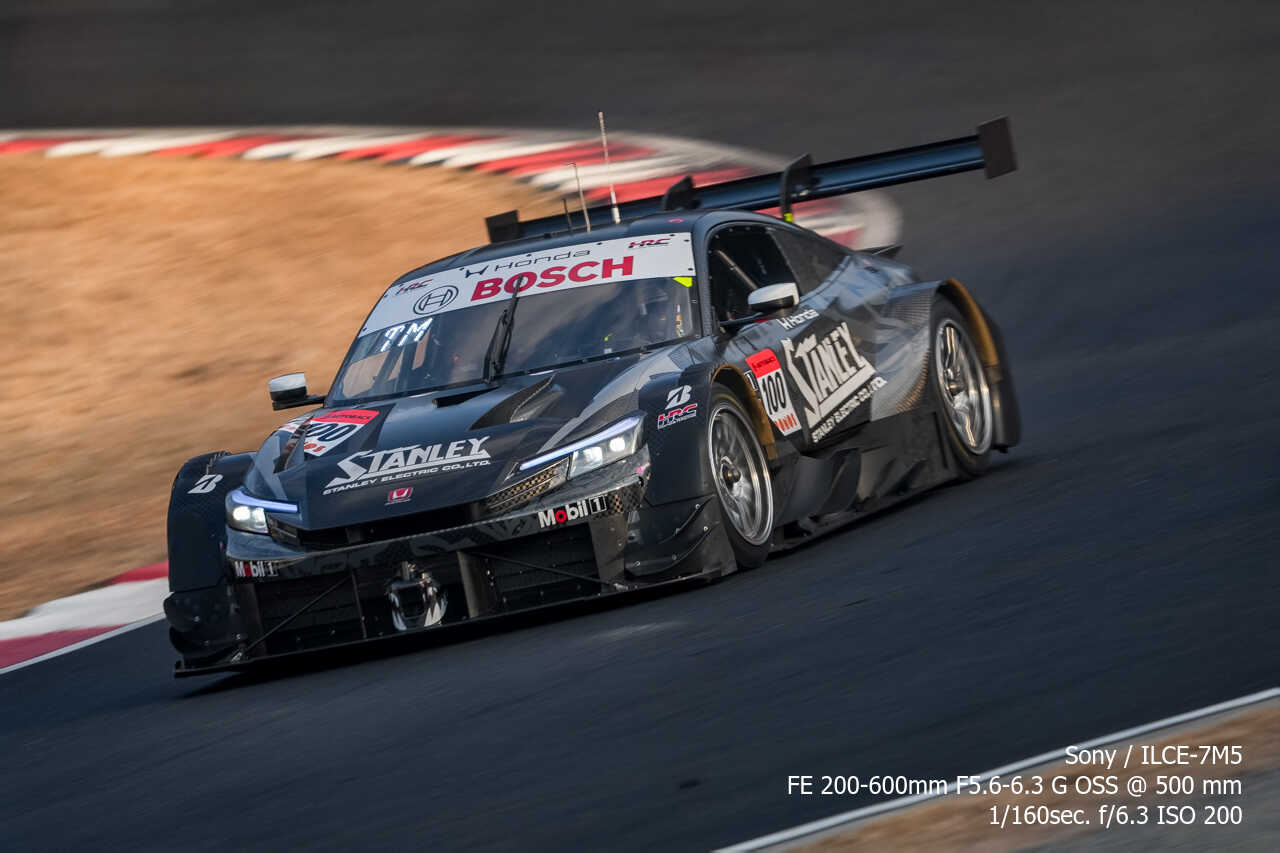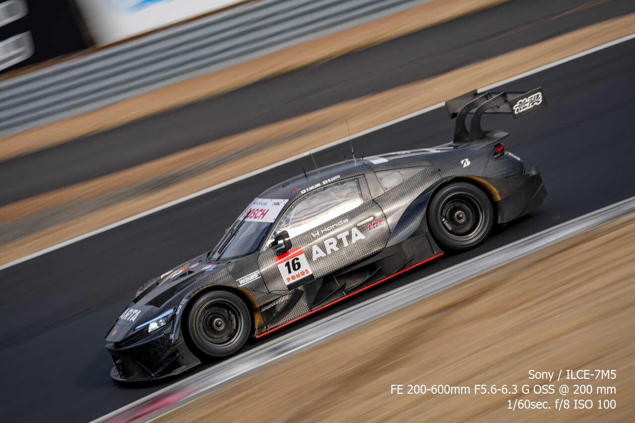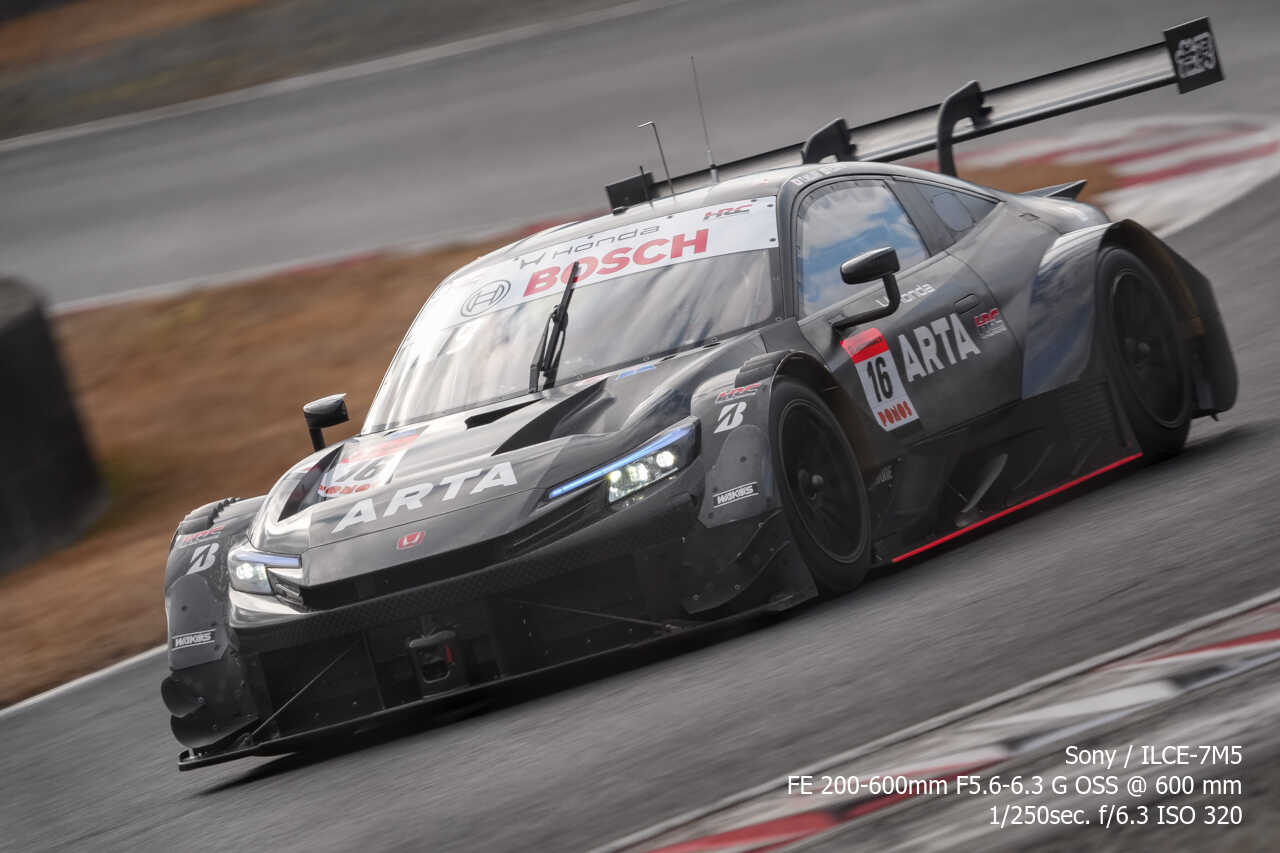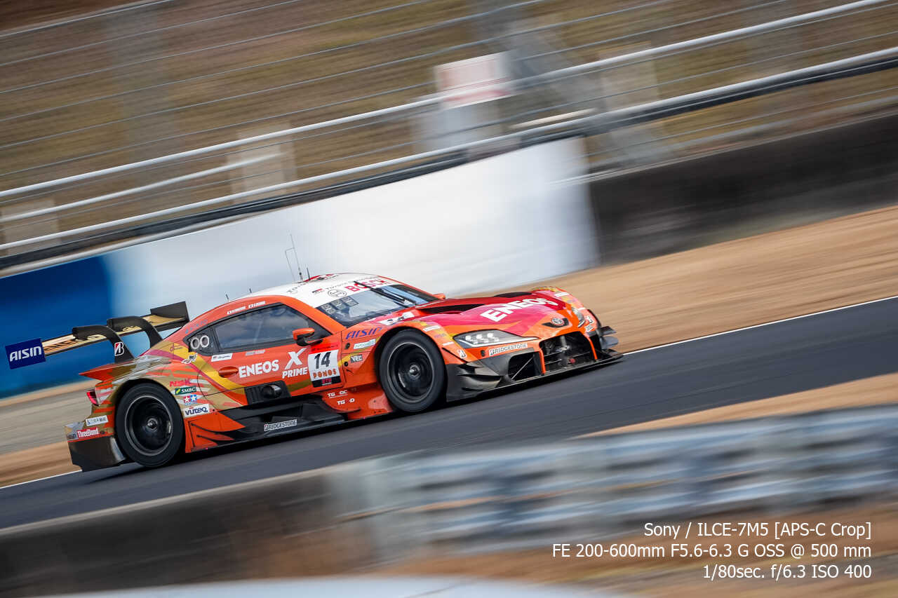 ここの構図はやっぱり左上げ構図なんだよな。ただ200mmという構図がGT500だとギリギリなのはあるんだけどな…。あとは、さすがに速度が速いので、ウォールは若干歪んでいるように見える。