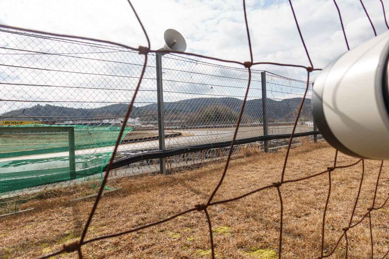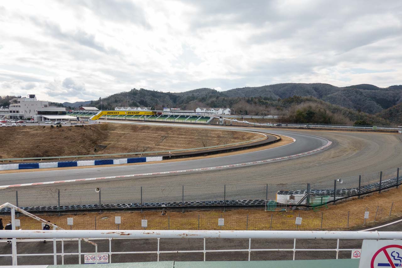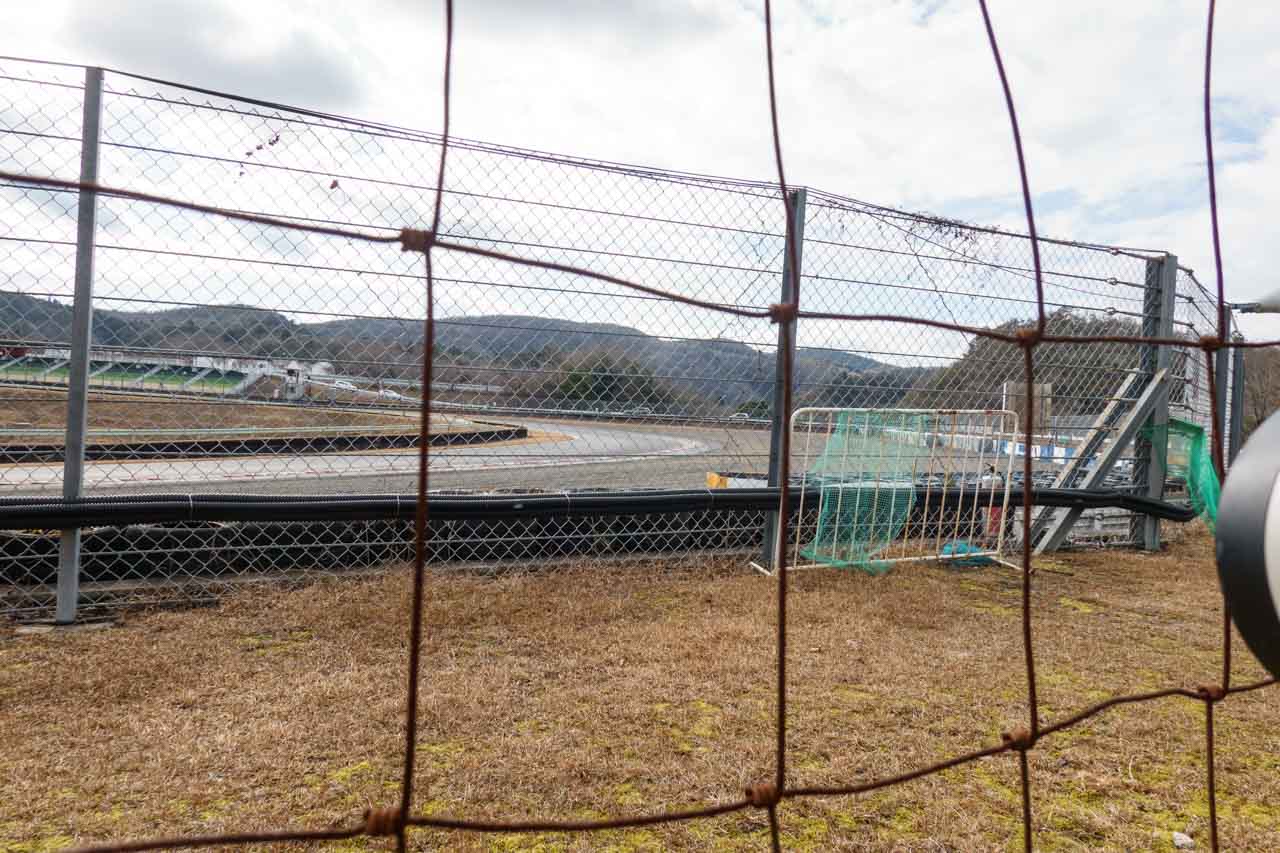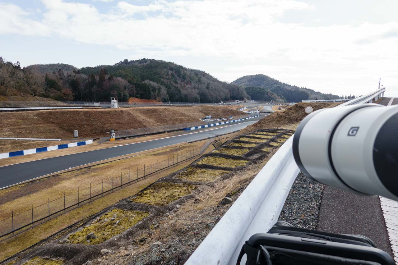 まず、向かったのは2コーナースタンドBの上。定番のバックストレートの流し撮りスポットです。というのも、岡山国際で流し撮り時の歪みを確認するにはここが一番分かりやすいだろうと思ってここにやってきました。