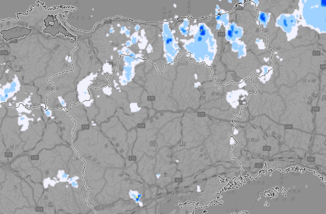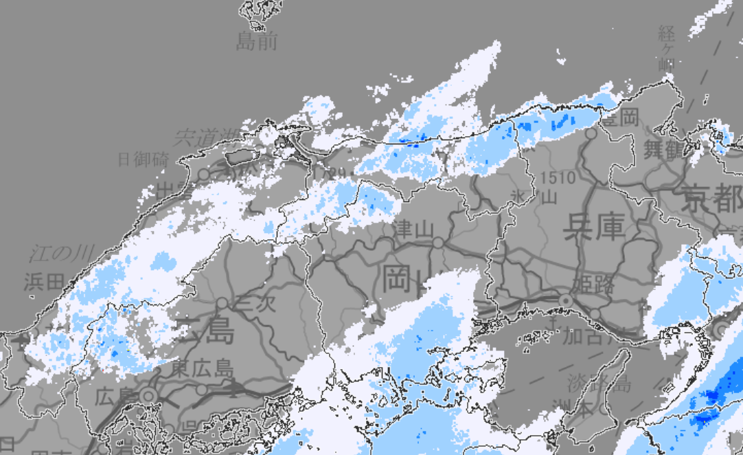 この時間帯は、微妙に雨雲の隅がかかっているような状態でパラパラと小雨が降っている感じ。ただ、レーダーを見ていても9時頃には止みそうな感じでした。