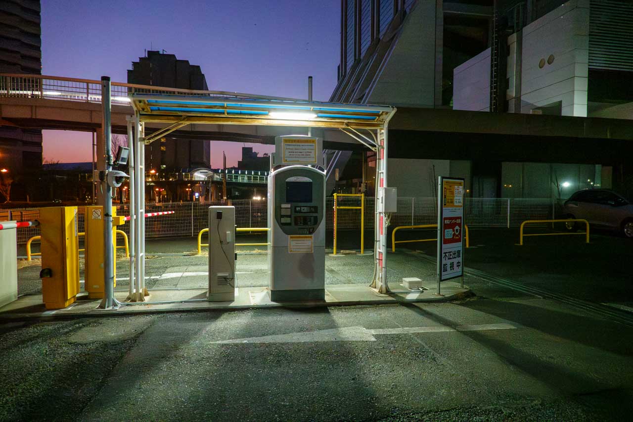 今回もいつものタイムズの「コスモスクエア第3」に駐めたのですが、真っ先に違和感を感じたのが駐車場のシステム。普通は、駐車券を受け取るのがパターンですが、ここにはそんなシステムはなく、すんなりとバーが空いて駐車場に入れちゃいます。