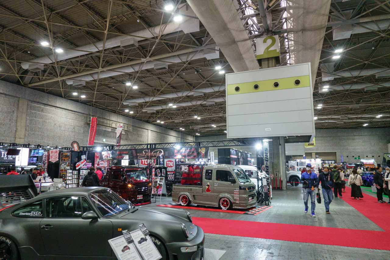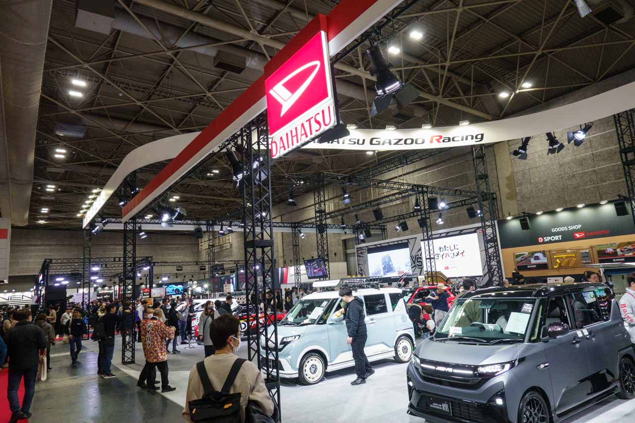 まずは1号館から。と言っても、今回一番来なかったのがこの1号館だったので、あんまり写真がないですが…。一昨年からフードコーナーやタミヤブースがあったものが、通常の車関連のブースになり、昨年からはトヨタ系が集約された感じはありますが、昨年は問題があって辞退していたダイハツさんも1号館にやってきて復活しました。