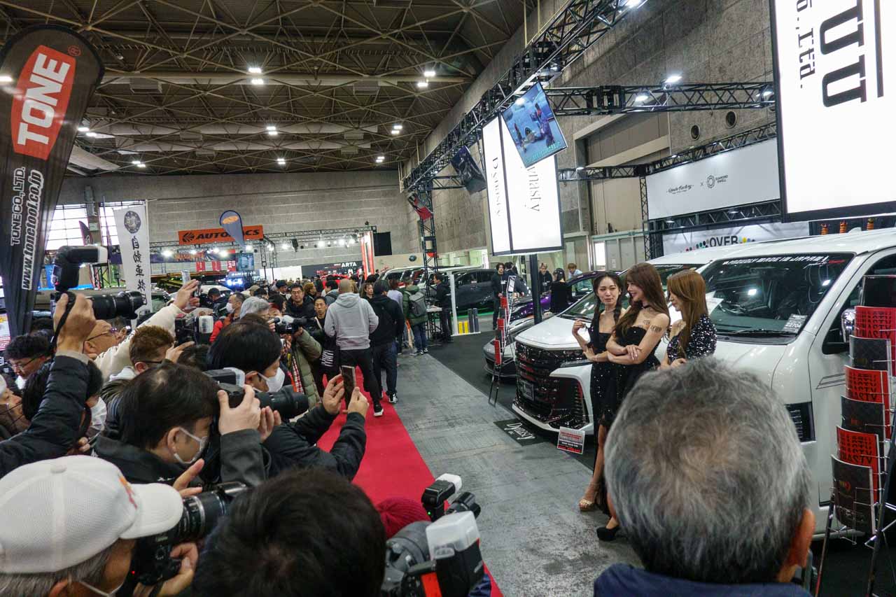 ここはKUHLやALPINE STYLE、アウトドア系のカスタムカーが並ぶ感じだけど、正直、コンパニオンさん的にはちょっと寂しい感じのエリア。