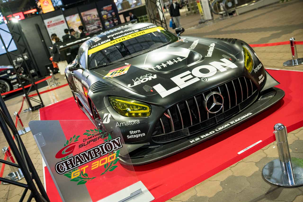 例のごとく、クローズド前でお客さんが少なくなったところで、エントランスのチャンピオンマシンを撮影。そういえば、この前の岡山でのGT500は1号車ではなく、36号車で走っていたから別車両なのかな?。それとも慌てて1号車を貼ったの?