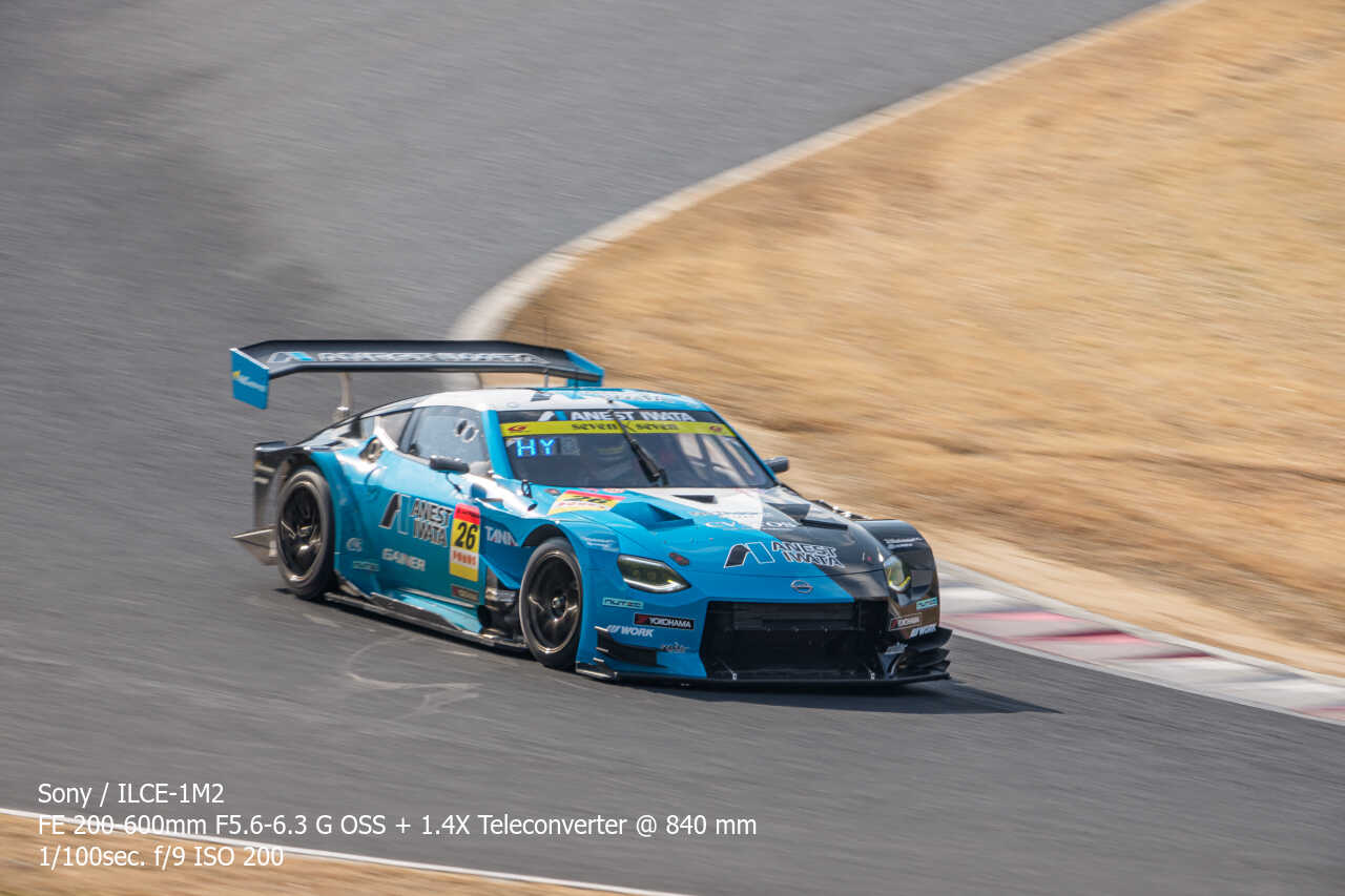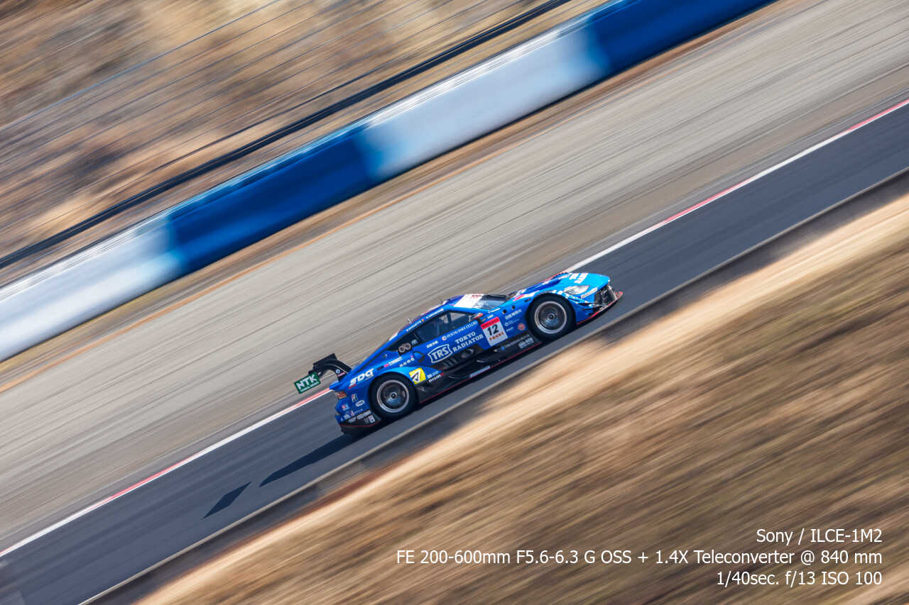 さすがにここはテレコン無しでは厳しいので、1.4倍テレコンを装着して840mmで。実際に狙うと分かるけど、思っているほど車速早くないから画角の割に1/40sでも思っているほど流れた感じならない。