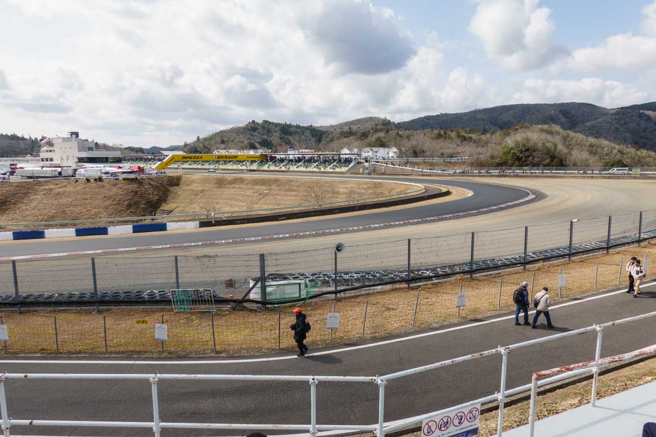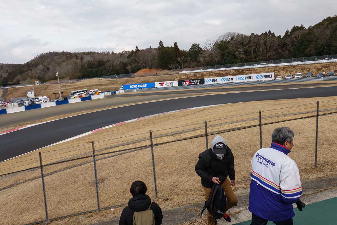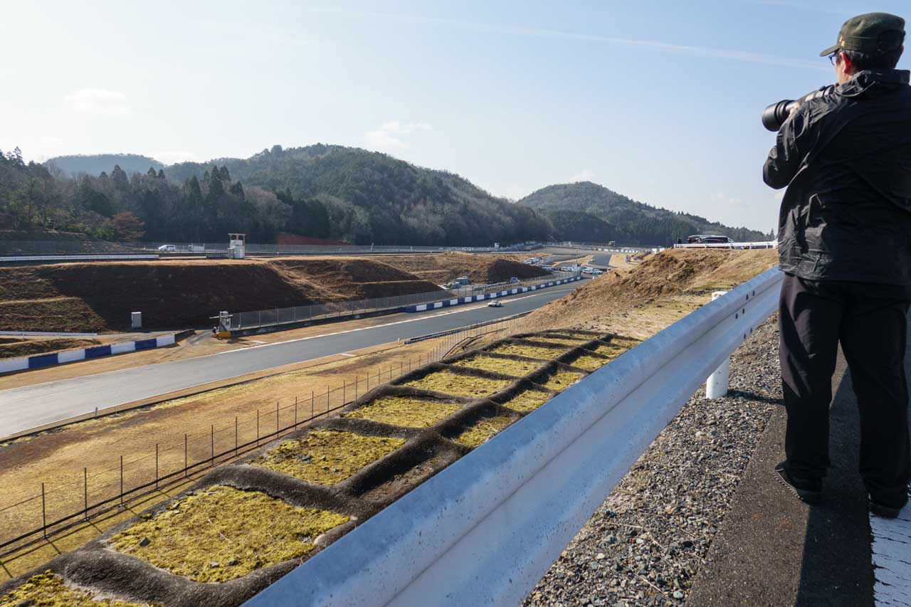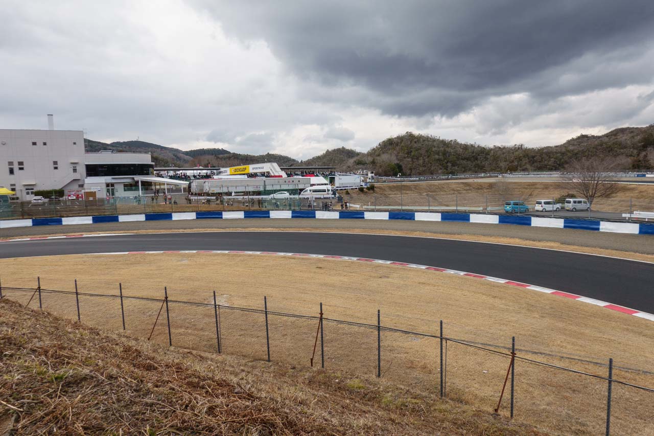 2月のGT500メーカーテストの時に、自分でも「公式テスト」では来るヒマがないから来たとか言っておきながら、結局やってきました。というのも、3月だと10:00~10:30頃から1コーナーのフェンス越しのゴールデンタイムになるのはこれまでの経験で分かっていたので、それまで1~2コーナー方向で時間を潰そうと考えたときに、モスSという選択肢が出てきました。とはいえ、このモスSまで移動してくる時間もかかるので、その点を考慮すれば必然的に朝イチというこのタイミングになった訳です。