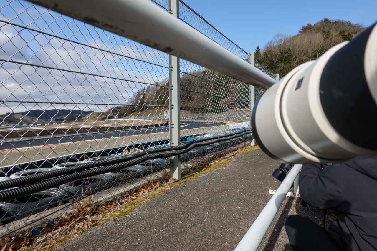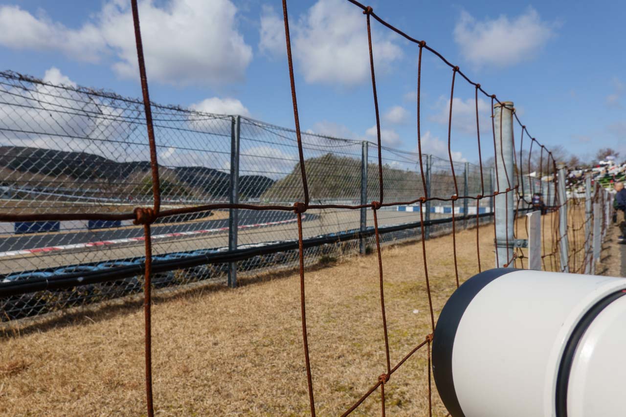 はい、久しぶりのリボルバーでのフェンス越し狙いです。先日もGT500メーカーテストの時に、久しぶりに狙いたいなあと思っていたのですが、たぶん2023年秋の全日本ロード以来、2年半ぶり。しかも、今回はナナニッパレンズにα7Vの組み合わせで狙います。こういう時に、もう一台、電子シャッターが使えるボディがあるというのは心強いです。