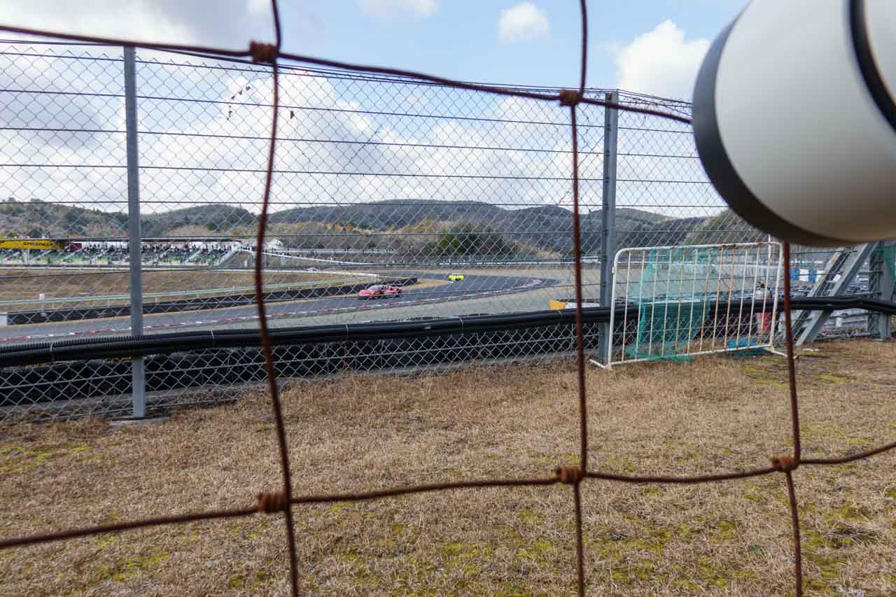 はい、いつものバックストレート流し撮りの定番スポットです。ちょうどバックストレートの事故車両が見えるということで、やたらとお客さんが集まってました。