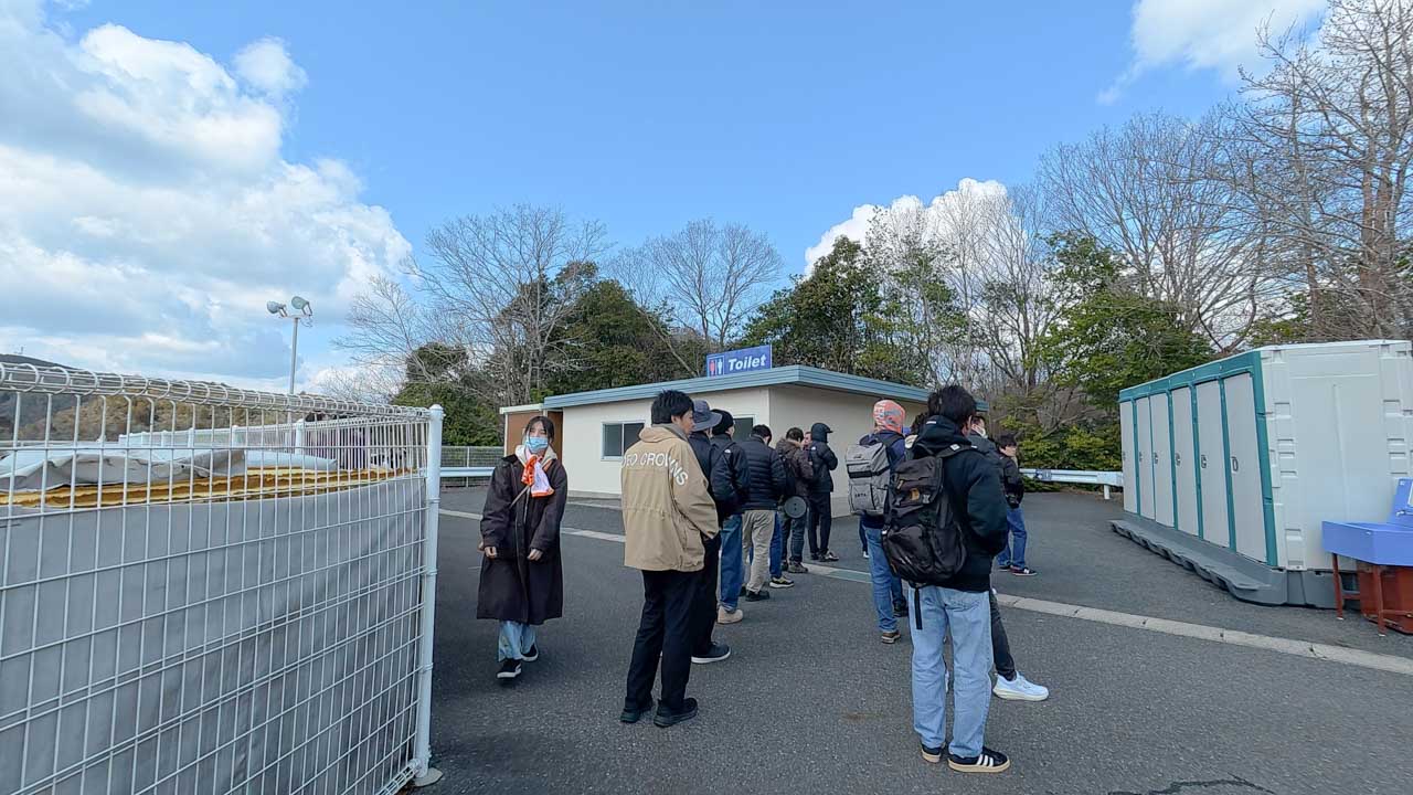 5分程でイベント広場には到着出来たのですが、驚いたのは男子トイレに20人ほどの列が出来ていたこと。女子トイレが混んだり、朝イチに大の方のトイレ待ちで数人が待っているのはこれまでも見たことがありますが、普通の男子トイレでこんなに並ぶなんてあんまり記憶に無いな…。まあ、午前の走行が終わって、ちょうど皆さんがトイレに流れ込む時間帯だったんでしょうね。