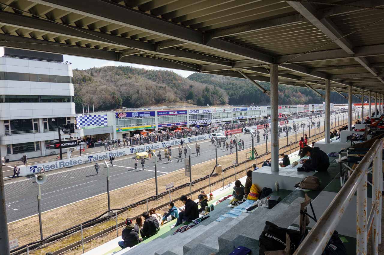 PA-6の様子はこんな感じ。「結構多いな」と思いながらこの写真を撮っていたけど、改めてこの記事を書きながら過去の写真を見返したら、まあそんなもんといえばそんなもん。特に、PA-6はゲートオープンからすぐに2コーナーからモスSにかけての方の列に車が並ぶというのが定番。
