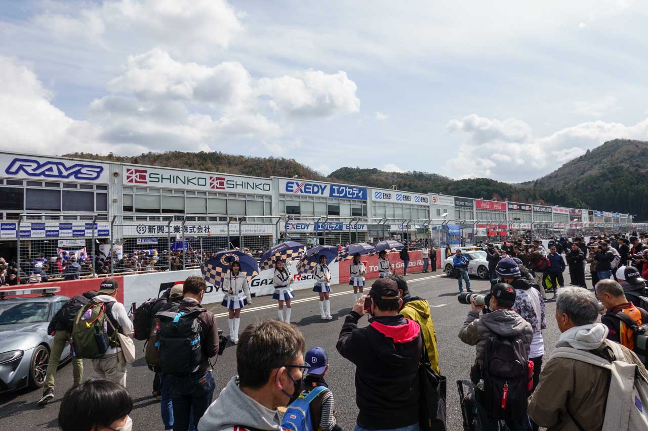 今回は、珍しく35-150mmではなく、マシン撮影用に持参していたSEL70200GM2で撮影(何か去年の事故が頭をよぎる…)。何だかんだで、サーキットでは35-150mmの率が高くて、それこそGM2に変えてから70-200mmでサーキットでアンバサダーさんを撮影した記憶があんまり無いぐらいだけど、お客さんが皆さん遠慮をしてなのか、Roucielの方々までとの距離が結構あったので、むしろナナニッパで良かった。まあ、私に限らず、マシン撮影している望遠レンズで撮りたいってなると、離れるしか無いもんな。