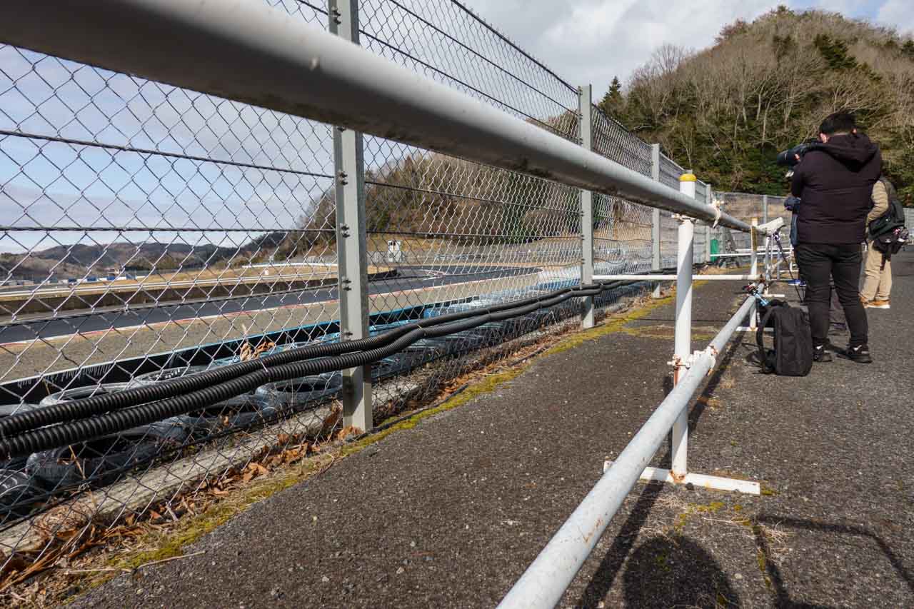で、位置的には7枚目のフェンス。2月のGT500メーカーテストの時は、8枚目と6枚目だったので、今回はちょうどその中間。ちなみに、他のカメラマンは私よりももっとアトウッド寄りで狙っていました。