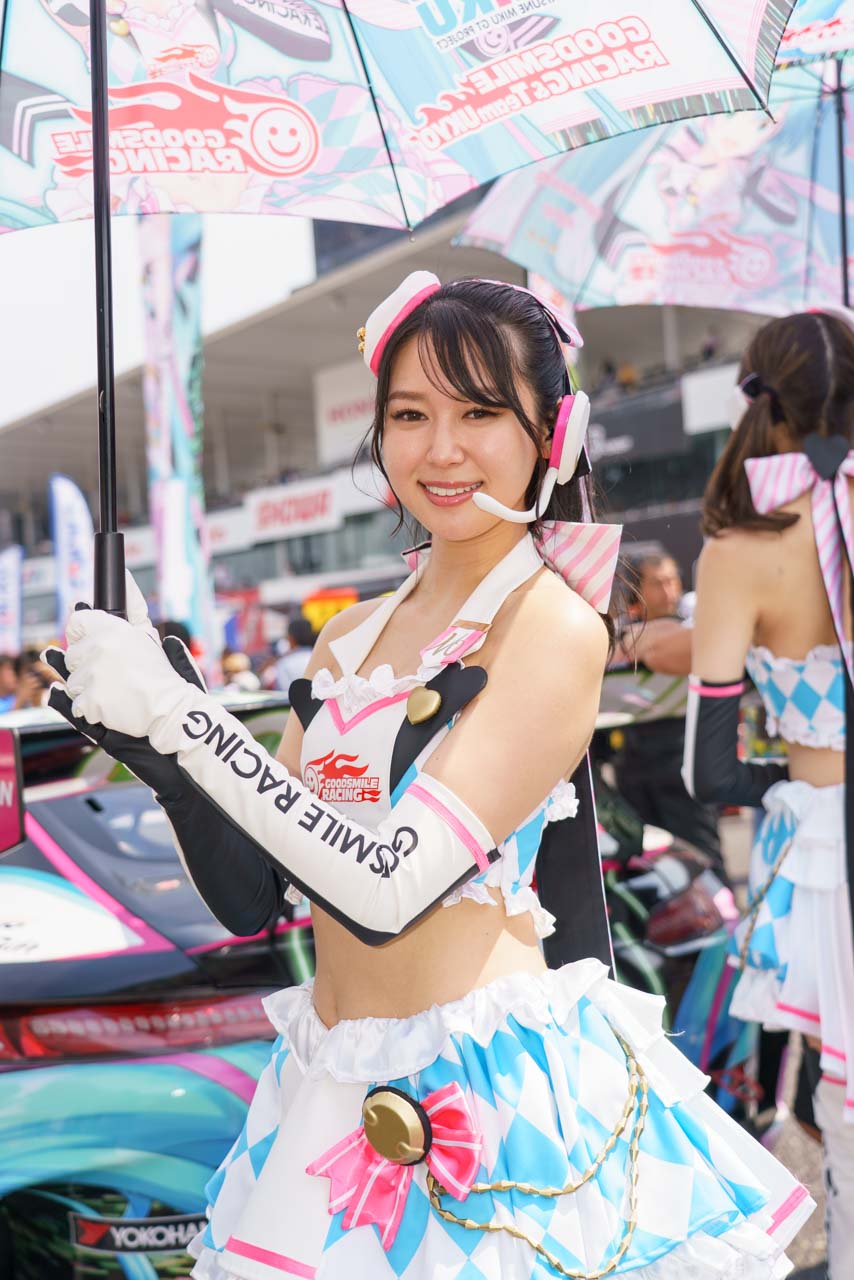 私としては、2014年からレースクイーンさんを撮るようになったので、この年(2014年)の鈴鹿1000kmが初めてでした。当時は、レースクイーンさんの名前もあまり知らない中で、唯一知っていた水谷望愛さんが初音ミクを務めていましたし、レース的にもグッドスマイル全盛期でもあったので早い段階から認識をしていました。とはいえ、(一部D1とか今年のSFとかもありますが…)メインカテゴリーでは初音ミク一本だったこともあり、もうその印象しか無いですね。何となく想い出としては2018年の鈴鹿10Hでの浴衣姿でしょうか。グリッドでピンで撮影したのは、実はこの2019年が最初で最期のようで、あとは案外ピットウォークで全員で撮影しているというのが多いんだよな。